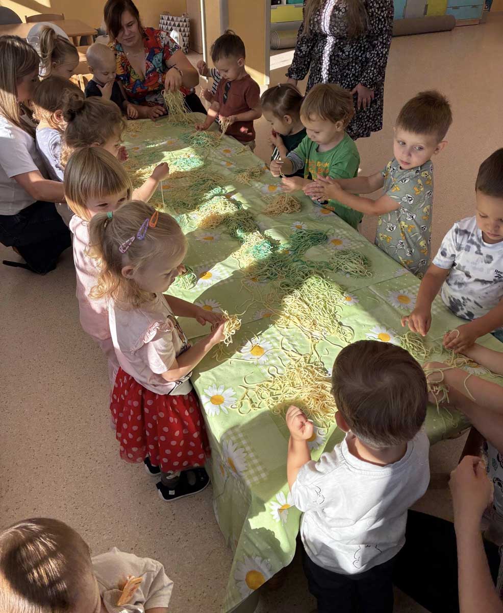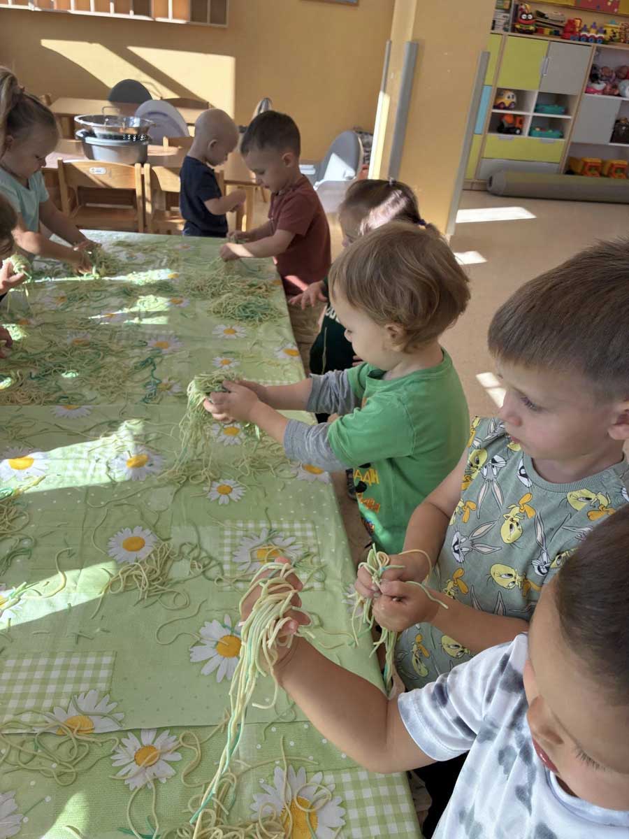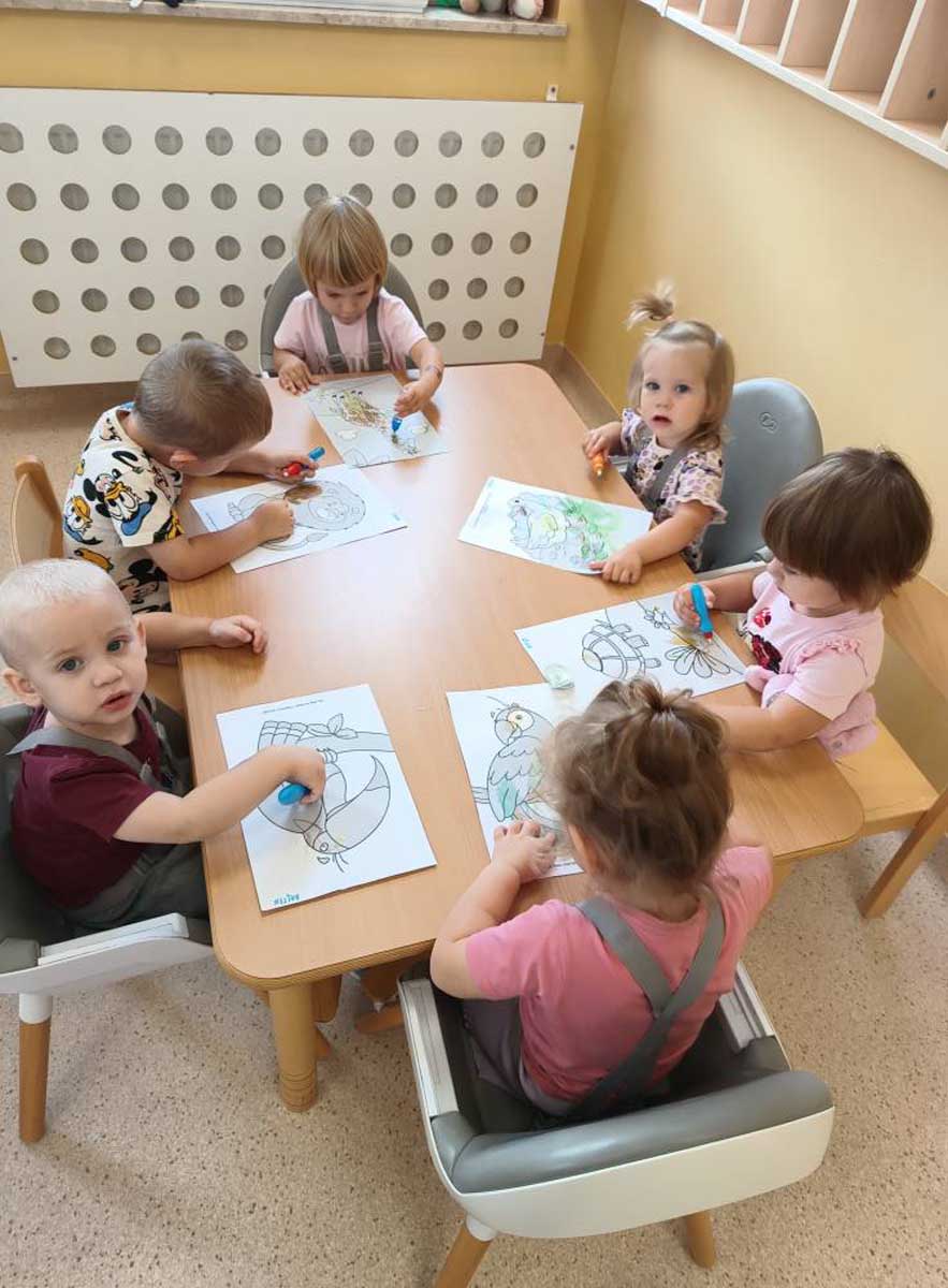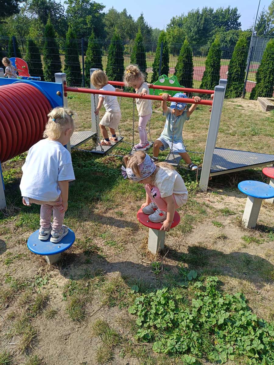 Maluszki aktywnie spędzały czas w salach żłobkowych, na żłobkowym placu zabaw oraz poznając otoczenie żłobka w czasie spacerów. „Słoneczka” bawiły się podczas realizacji tematów tygodniowych: