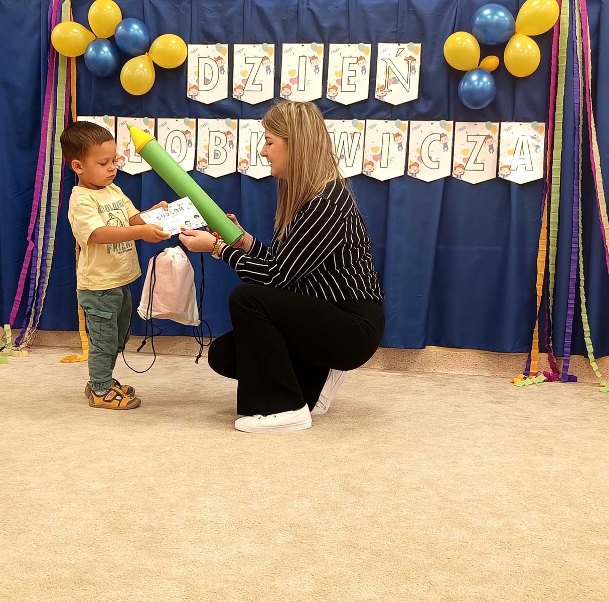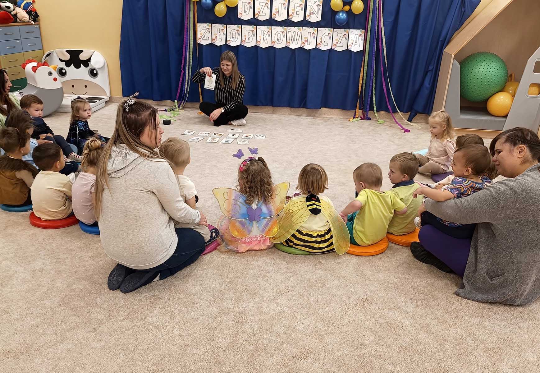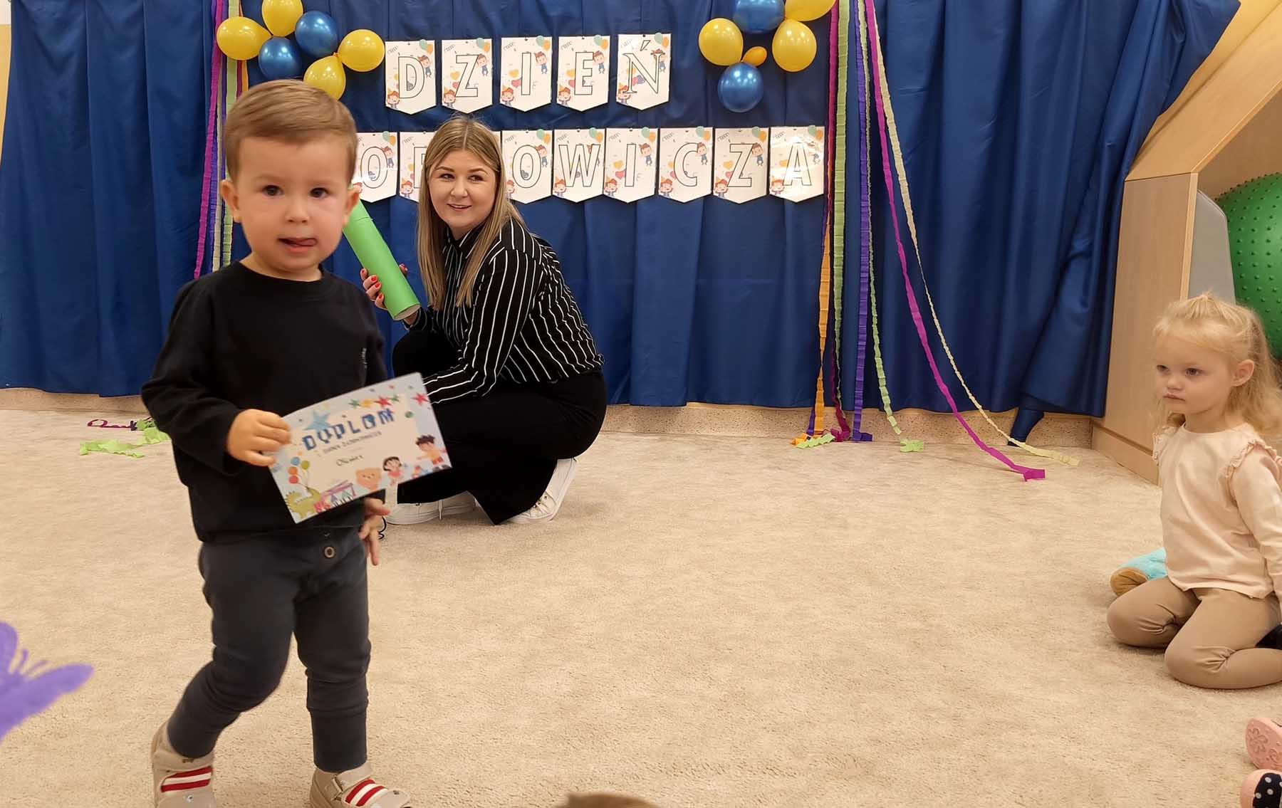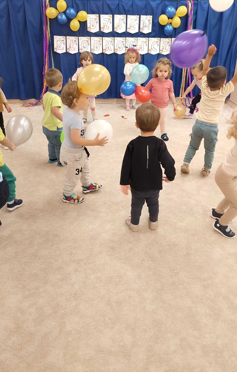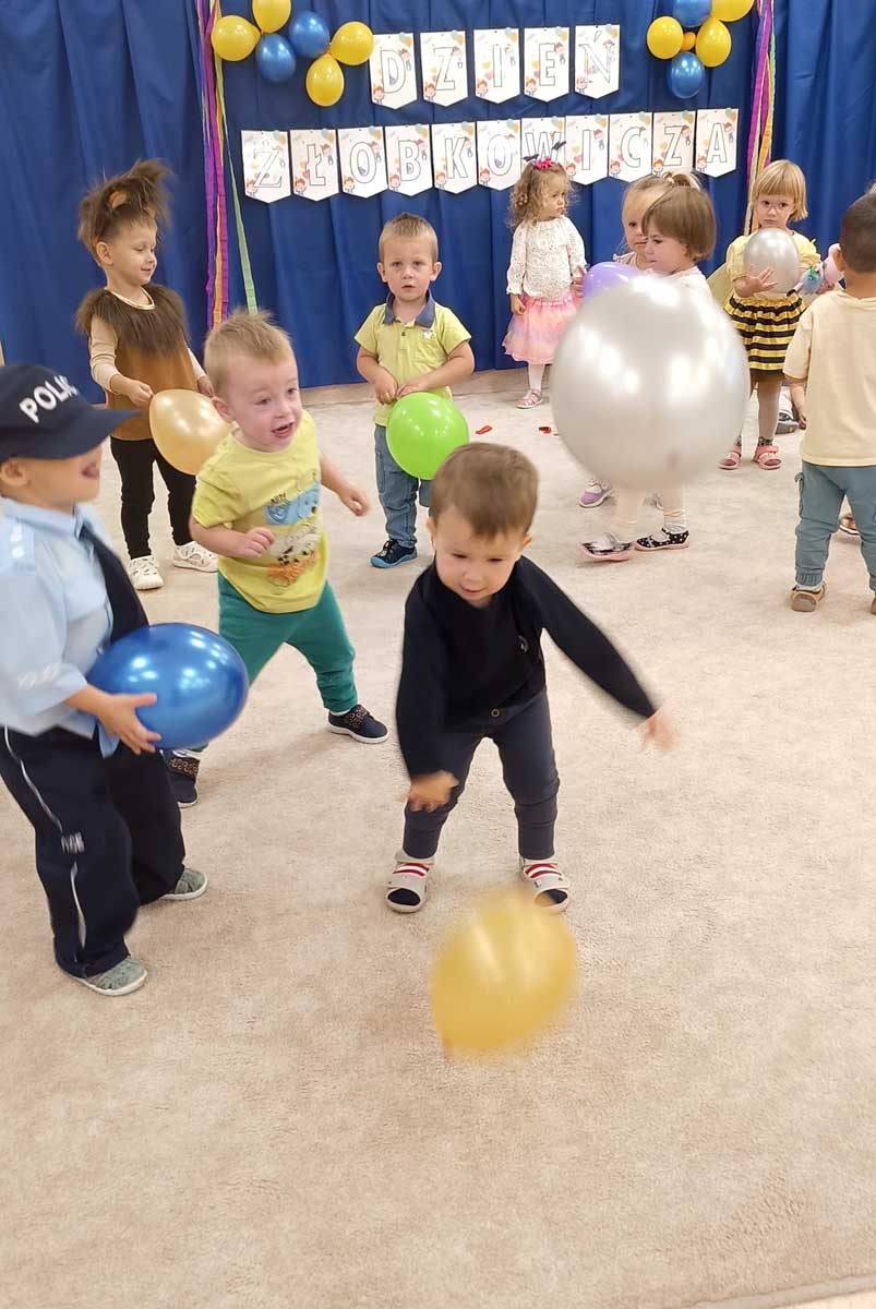 „Dzień Żłobkowicza” to niewątpliwie ten dzień, w którym nasze maluszki czują się niepowtarzalnie. Ten wyjątkowy dzień rozpoczęliśmy wspólną piosenką integracyjną, która wprowadziła wszystkich w radosny nastrój. Następnie dzieci poznały Kodeks Żłobkowicza, a najważniejszym momentem było uroczyste Pasowanie na Żłobkowicza połączone z wręczeniem dyplomów i upominków. Nie zabrakło także radosnych zabaw z chustą animacyjną i balonami, które wywołały mnóstwo uśmiechów. Na zakończenie wszyscy zasiedli do wspólnego poczęstunku, celebrując ten ważny dzieńs.