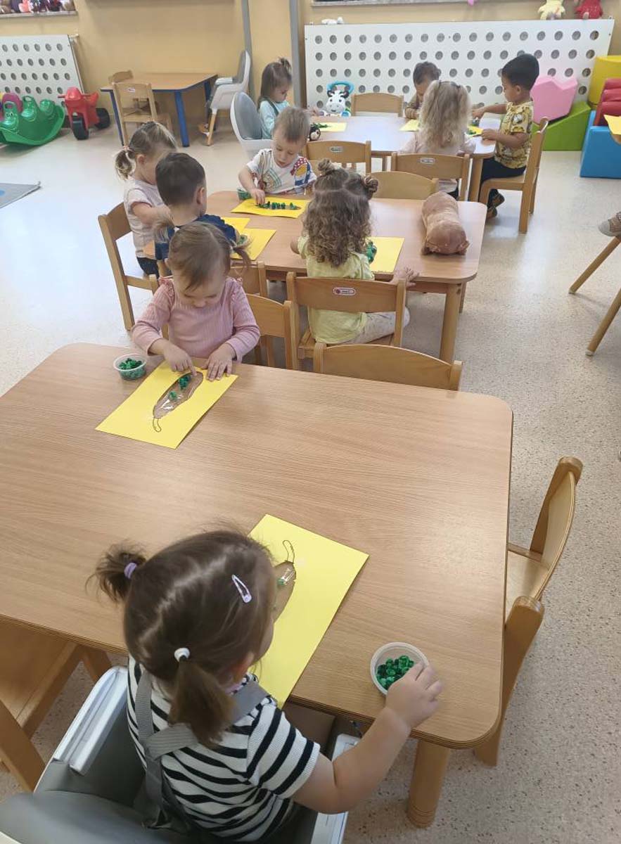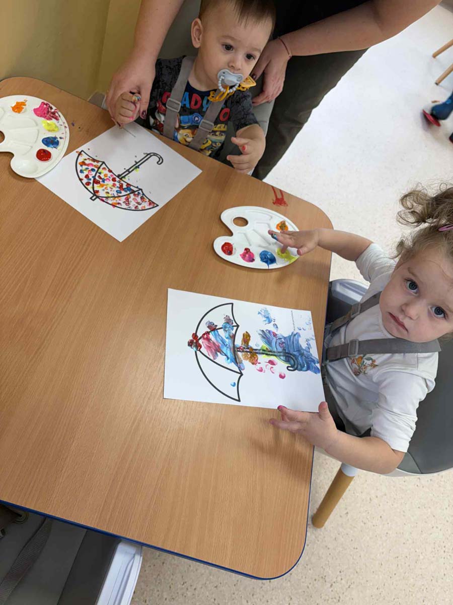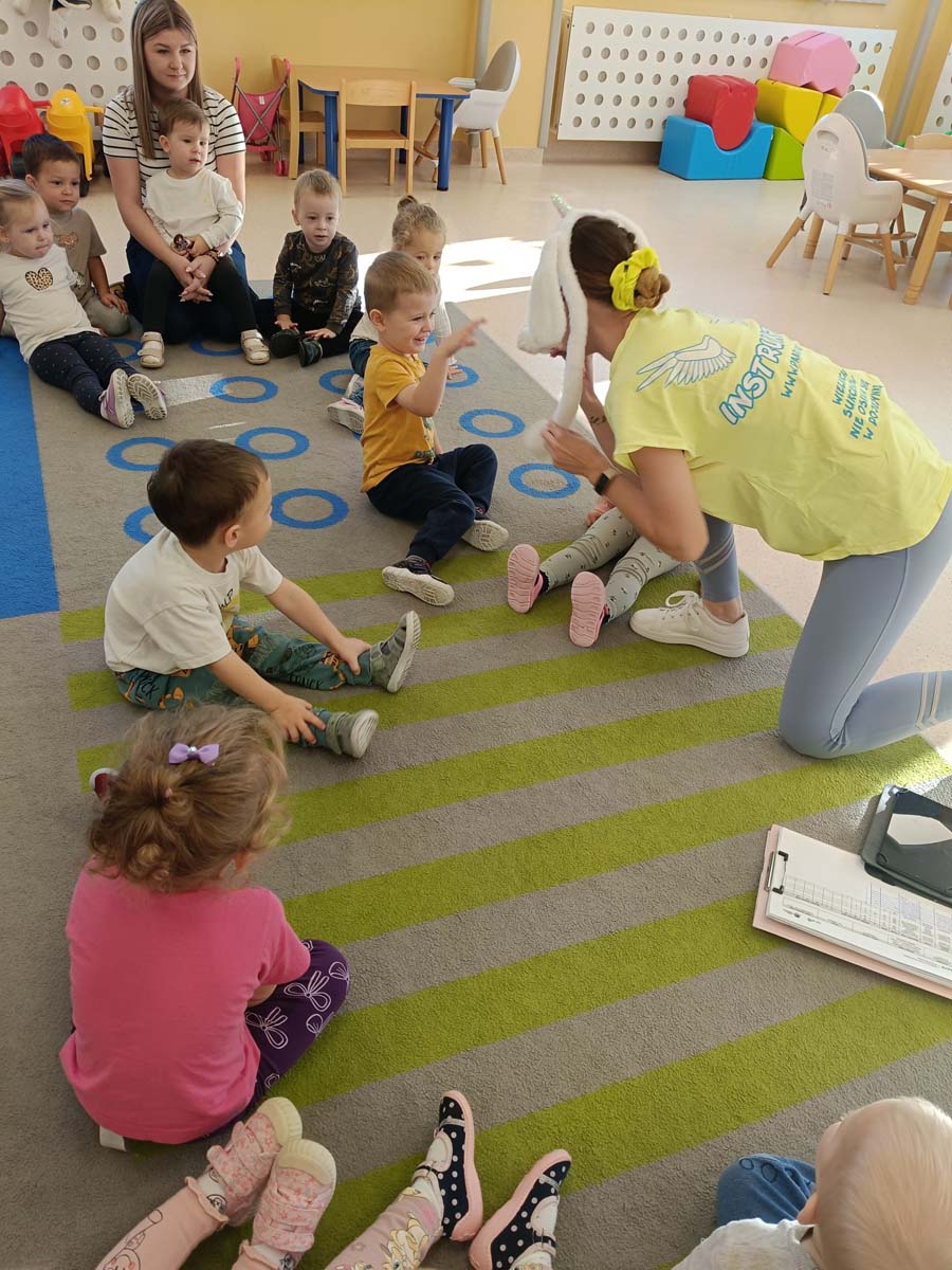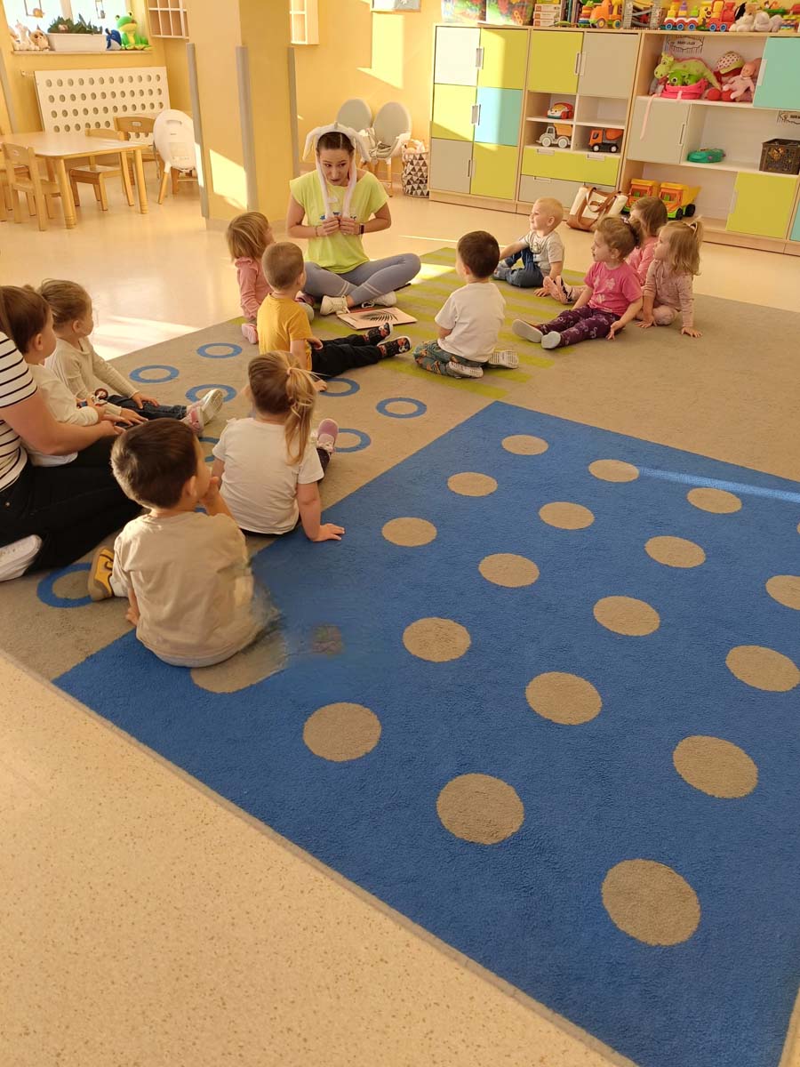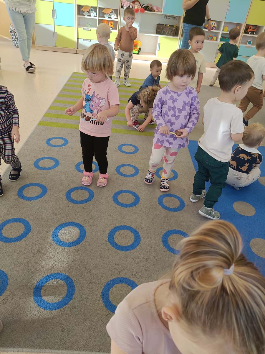 Maluszki rozwijały spostrzegawczość poprzez klasyfikowanie ilustracji według jednej cechy oraz kształtowały umiejętność stosowania pojęć orientacji przestrzennej: na, pod, obok. Zachęcone podczas pogadanek dydaktycznych podejmowały próby wypowiadania się w oparciu o historyjki obrazkowe bądź ilustracje. Dzieci usprawniały też narządy mowy podczas zabaw logopedycznych oraz oddechowych. Rozwijały zmysł słuchu poprzez zaznajomienie z instrumentem - ukulele oraz gry na instrumentach perkusyjnych. Podczas zabaw manualnych ćwiczyły precyzję ruchów dłoni, motorykę małą i koordynację wzrokowo - ruchową. Doskonaliły ogólną sprawność ruchową podczas zabaw muzyczno - ruchowych, orientacyjno - porządkowych, rytmicznych oraz z wykorzystaniem kart ruchowych. Maluszki uczestniczyły w zabawach paluszkowych, relaksacyjnych oraz ćwiczących równowagę i stabilność zwiększając koncentrację, a także precyzję ruchów. Ilustrowały słowa rymowanek i wierszy, jak również dzieliły słowa na sylaby poprzez wyklaskiwanie. Pobudzając wyobraźnię, rozwijając spostrzegawczość i sprawność manualną tworzyły także prace plastyczne i plastyczno - sensoryczne.
