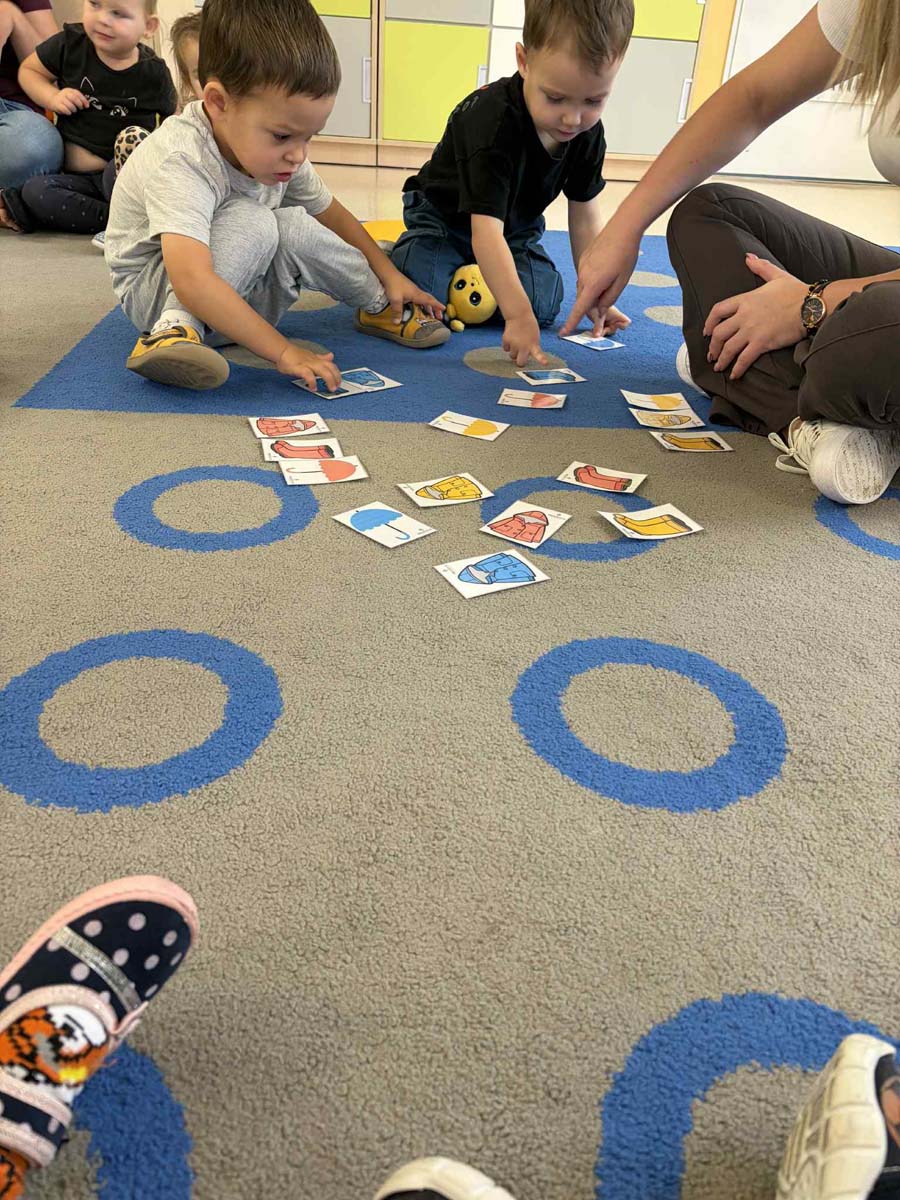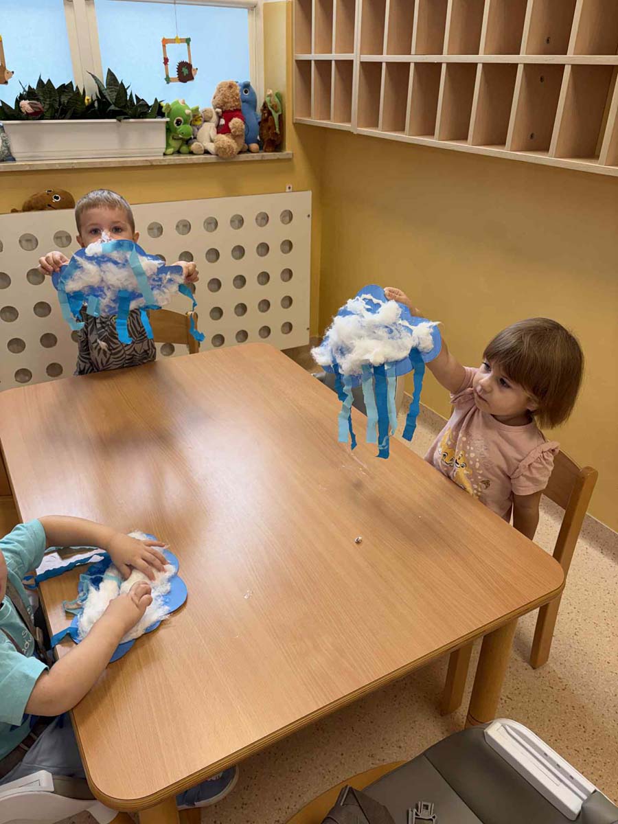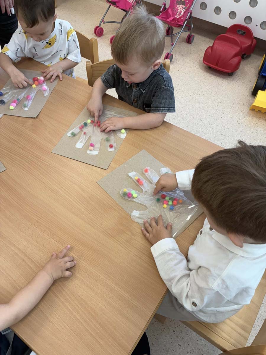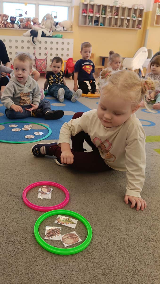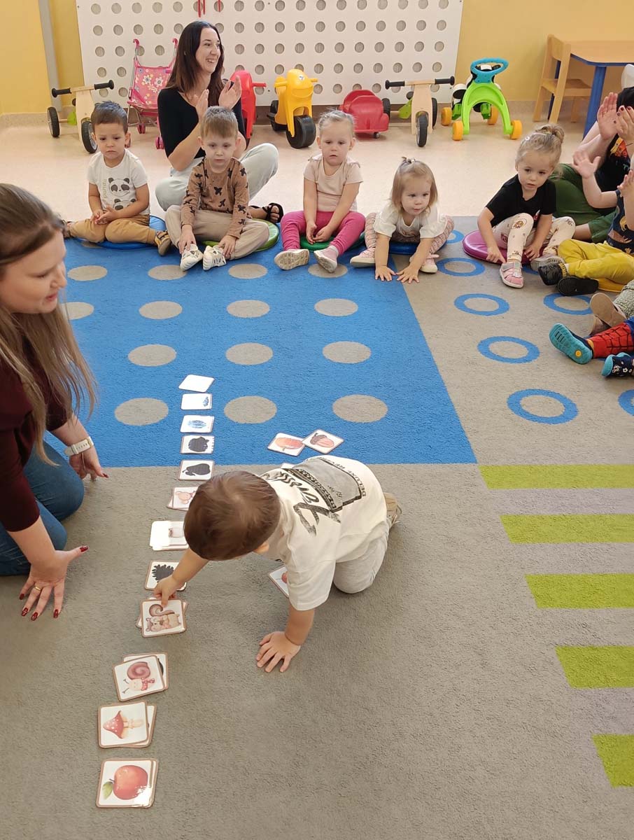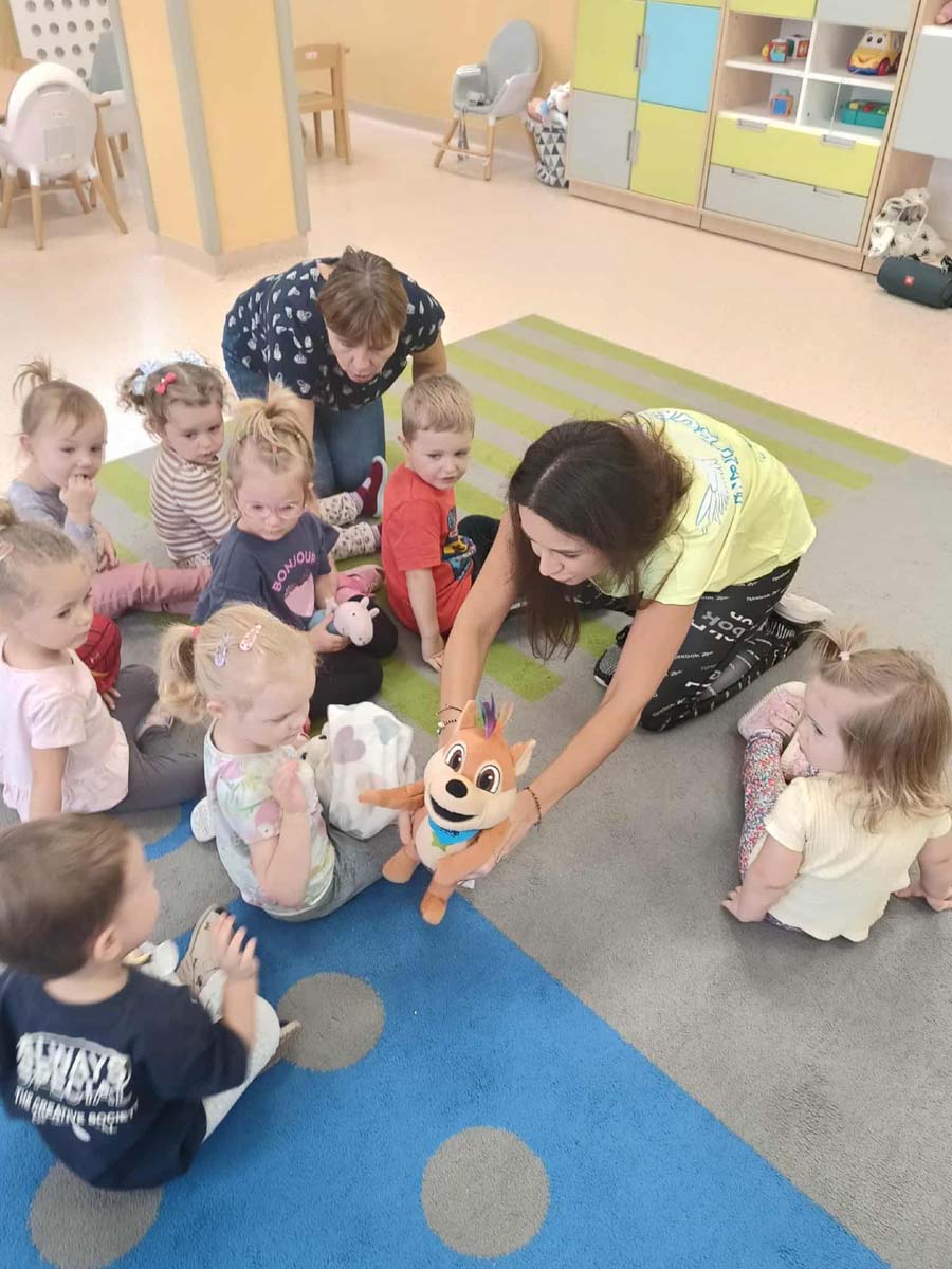 Maluszki rozwijały spostrzegawczość poprzez klasyfikowanie ilustracji według jednej cechy oraz kształtowały umiejętność stosowania pojęć orientacji przestrzennej: na, pod, obok. Zachęcone podczas pogadanek dydaktycznych podejmowały próby wypowiadania się w oparciu o historyjki obrazkowe bądź ilustracje. Dzieci usprawniały też narządy mowy podczas zabaw logopedycznych oraz oddechowych. Rozwijały zmysł słuchu poprzez zaznajomienie z instrumentem - ukulele oraz gry na instrumentach perkusyjnych. Podczas zabaw manualnych ćwiczyły precyzję ruchów dłoni, motorykę małą i koordynację wzrokowo - ruchową. Doskonaliły ogólną sprawność ruchową podczas zabaw muzyczno - ruchowych, orientacyjno - porządkowych, rytmicznych oraz z wykorzystaniem kart ruchowych. Maluszki uczestniczyły w zabawach paluszkowych, relaksacyjnych oraz ćwiczących równowagę i stabilność zwiększając koncentrację, a także precyzję ruchów. Ilustrowały słowa rymowanek i wierszy, jak również dzieliły słowa na sylaby poprzez wyklaskiwanie. Pobudzając wyobraźnię, rozwijając spostrzegawczość i sprawność manualną tworzyły także prace plastyczne i plastyczno - sensoryczne.