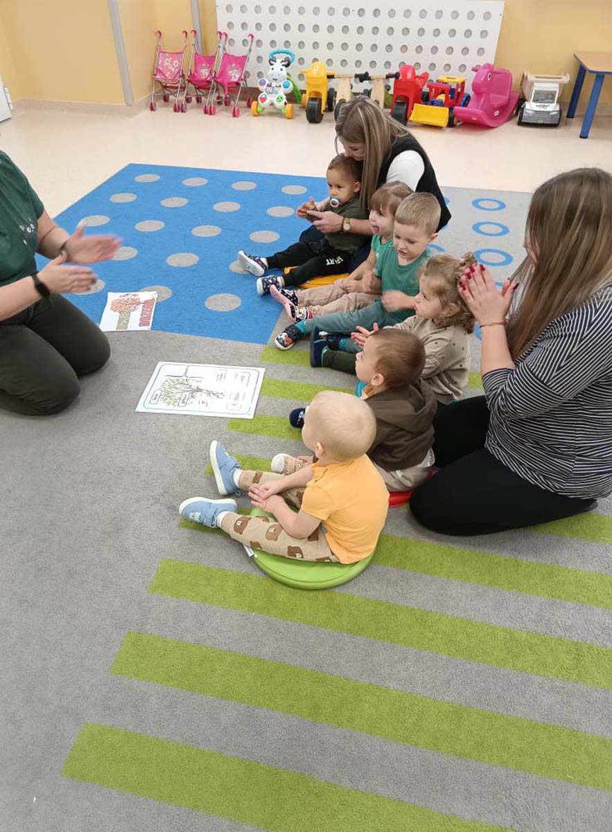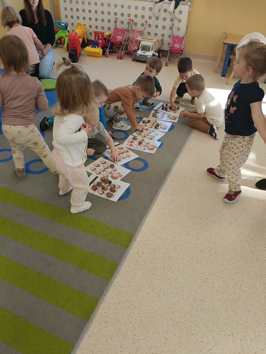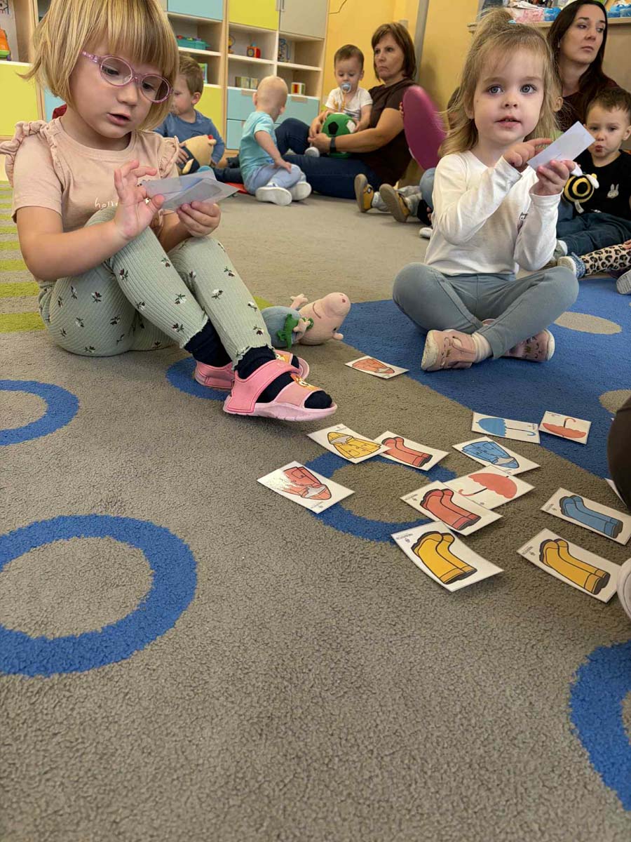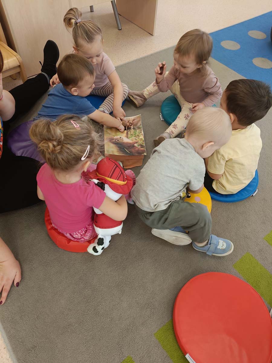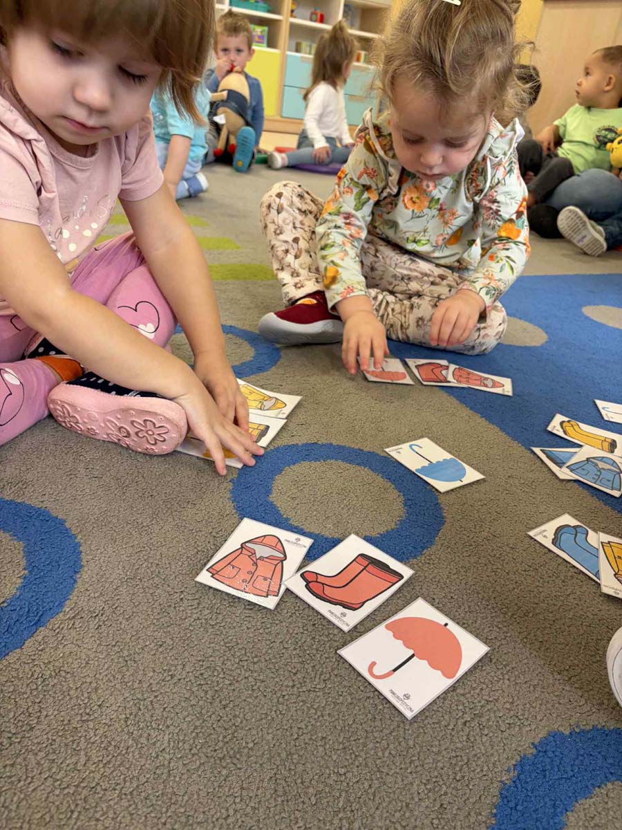 Maluszki rozwijały spostrzegawczość poprzez klasyfikowanie ilustracji według jednej cechy oraz kształtowały umiejętność stosowania pojęć orientacji przestrzennej: na, pod, obok. Zachęcone podczas pogadanek dydaktycznych podejmowały próby wypowiadania się w oparciu o historyjki obrazkowe bądź ilustracje. Dzieci usprawniały też narządy mowy podczas zabaw logopedycznych oraz oddechowych. Rozwijały zmysł słuchu poprzez zaznajomienie z instrumentem - ukulele oraz gry na instrumentach perkusyjnych. Podczas zabaw manualnych ćwiczyły precyzję ruchów dłoni, motorykę małą i koordynację wzrokowo - ruchową. Doskonaliły ogólną sprawność ruchową podczas zabaw muzyczno - ruchowych, orientacyjno - porządkowych, rytmicznych oraz z wykorzystaniem kart ruchowych. Maluszki uczestniczyły w zabawach paluszkowych, relaksacyjnych oraz ćwiczących równowagę i stabilność zwiększając koncentrację, a także precyzję ruchów. Ilustrowały słowa rymowanek i wierszy, jak również dzieliły słowa na sylaby poprzez wyklaskiwanie. Pobudzając wyobraźnię, rozwijając spostrzegawczość i sprawność manualną tworzyły także prace plastyczne i plastyczno - sensoryczne.
