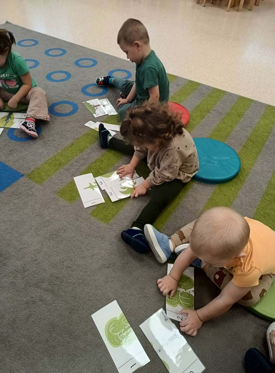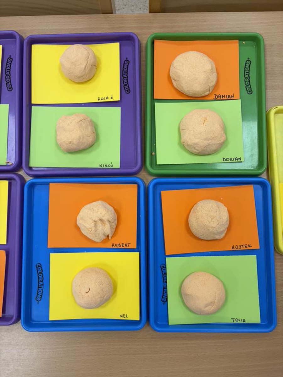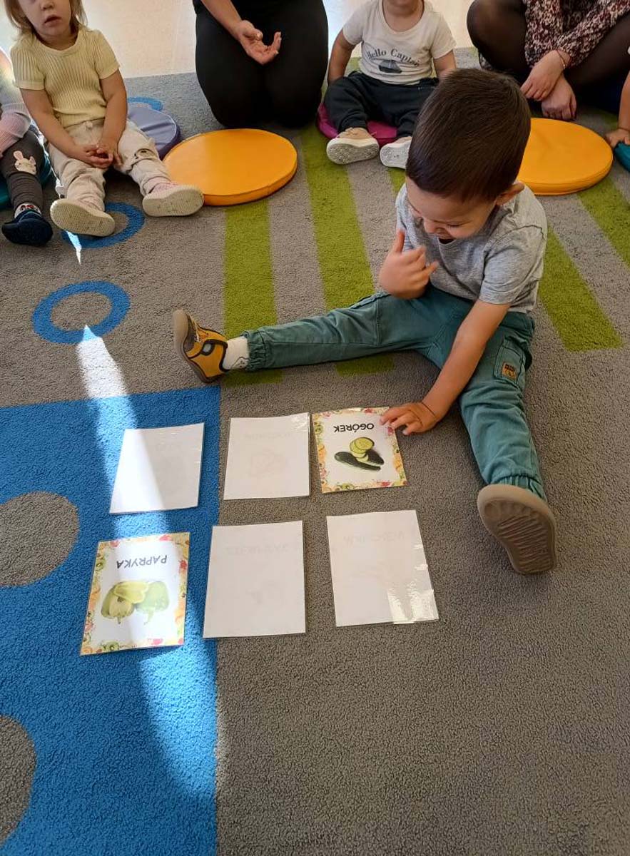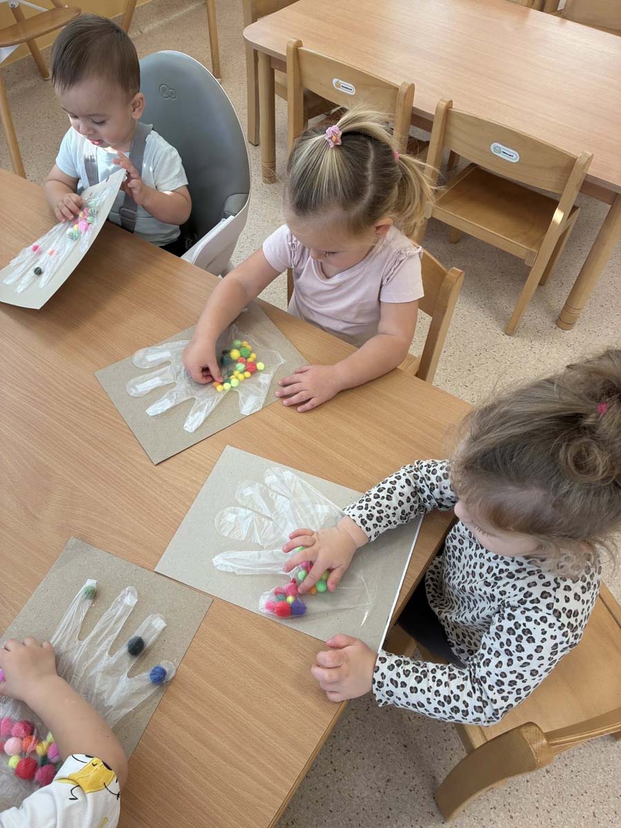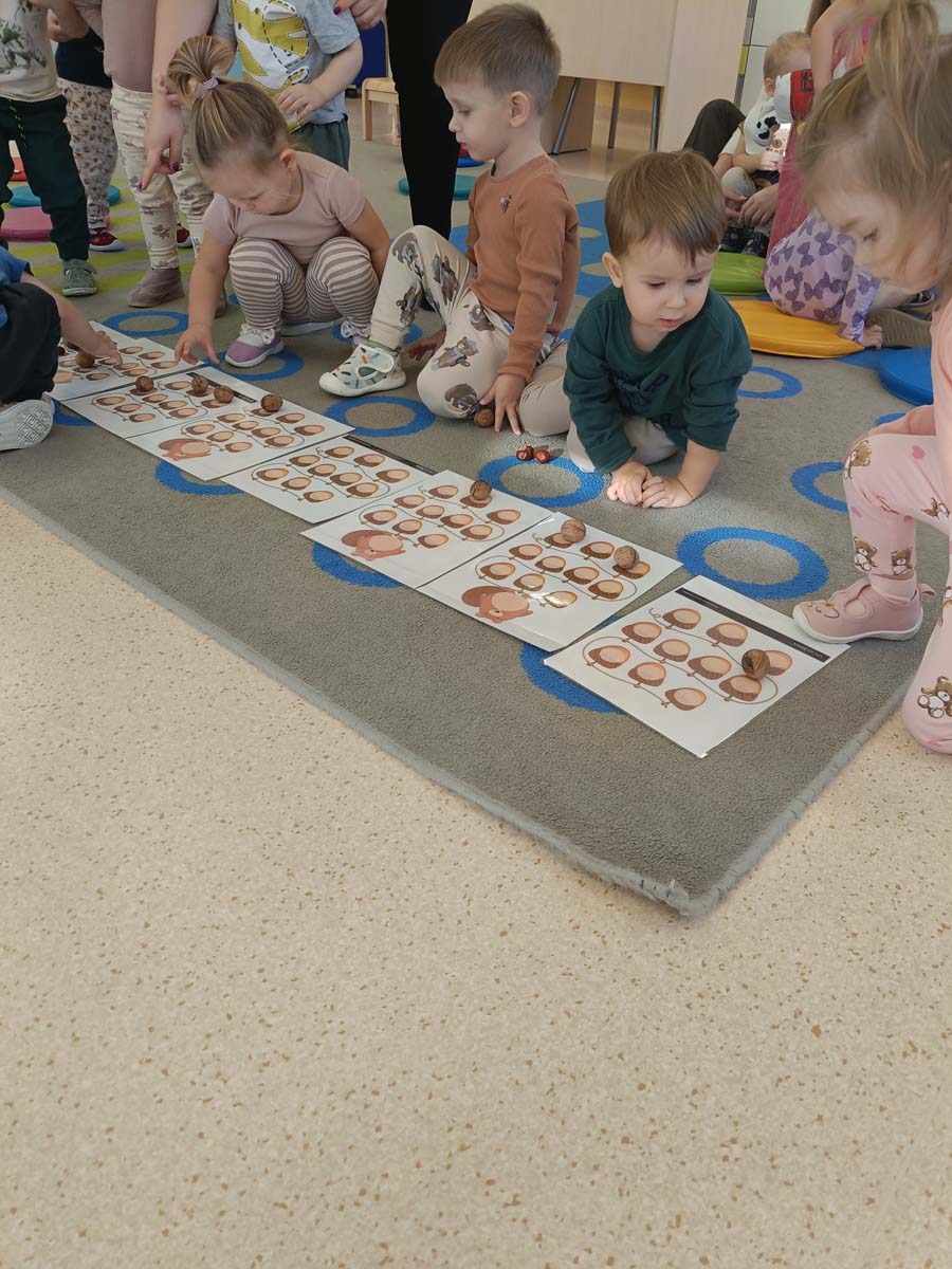 Maluszki rozwijały spostrzegawczość poprzez klasyfikowanie ilustracji według jednej cechy oraz kształtowały umiejętność stosowania pojęć orientacji przestrzennej: na, pod, obok. Zachęcone podczas pogadanek dydaktycznych podejmowały próby wypowiadania się w oparciu o historyjki obrazkowe bądź ilustracje. Dzieci usprawniały też narządy mowy podczas zabaw logopedycznych oraz oddechowych. Rozwijały zmysł słuchu poprzez zaznajomienie z instrumentem - ukulele oraz gry na instrumentach perkusyjnych. Podczas zabaw manualnych ćwiczyły precyzję ruchów dłoni, motorykę małą i koordynację wzrokowo - ruchową. Doskonaliły ogólną sprawność ruchową podczas zabaw muzyczno - ruchowych, orientacyjno - porządkowych, rytmicznych oraz z wykorzystaniem kart ruchowych. Maluszki uczestniczyły w zabawach paluszkowych, relaksacyjnych oraz ćwiczących równowagę i stabilność zwiększając koncentrację, a także precyzję ruchów. Ilustrowały słowa rymowanek i wierszy, jak również dzieliły słowa na sylaby poprzez wyklaskiwanie. Pobudzając wyobraźnię, rozwijając spostrzegawczość i sprawność manualną tworzyły także prace plastyczne i plastyczno - sensoryczne.