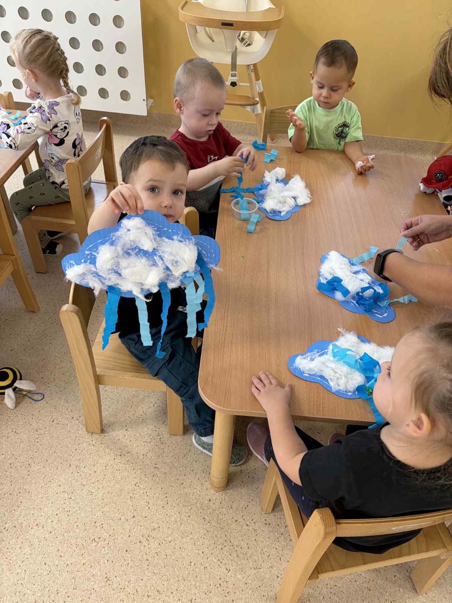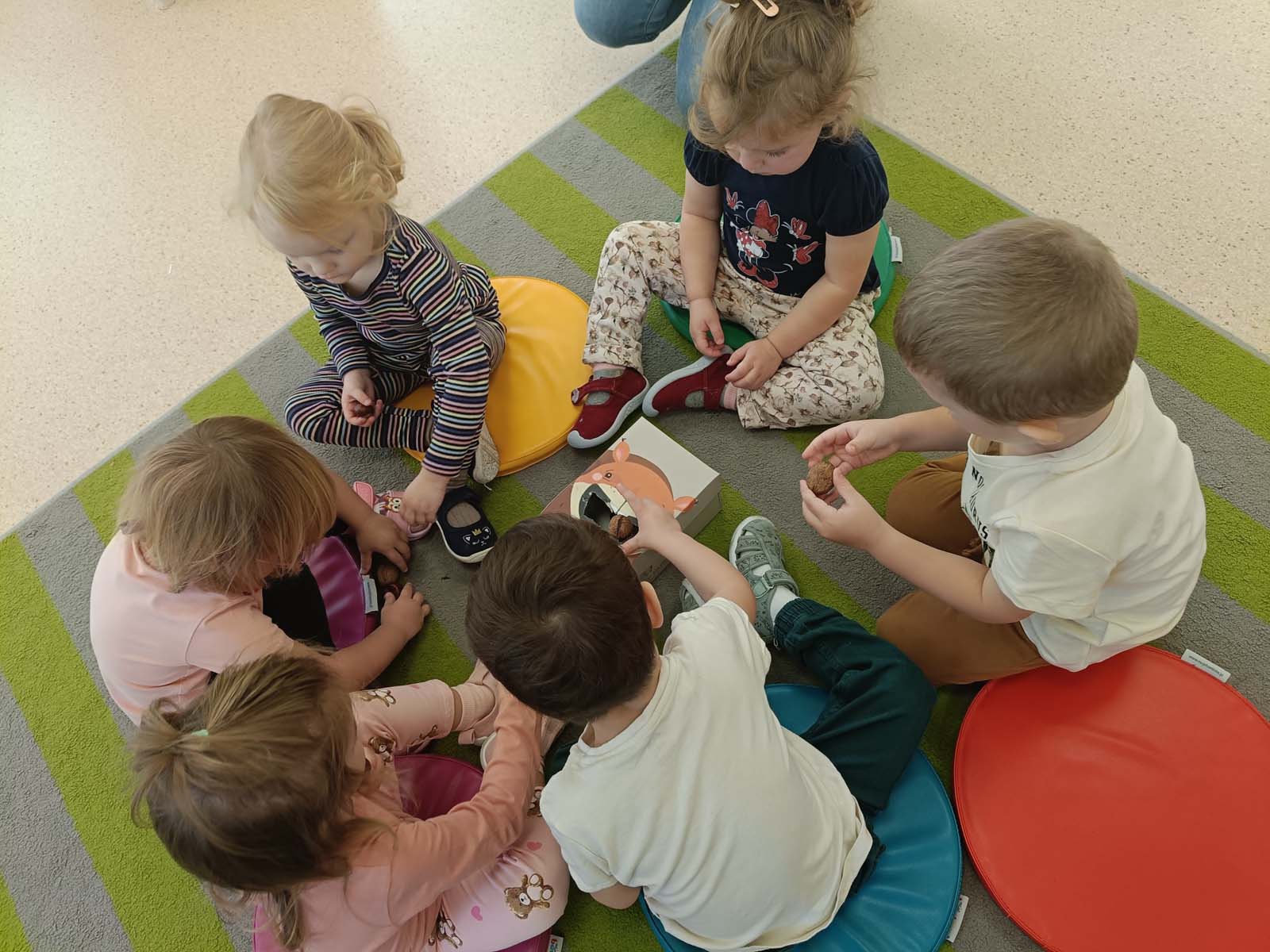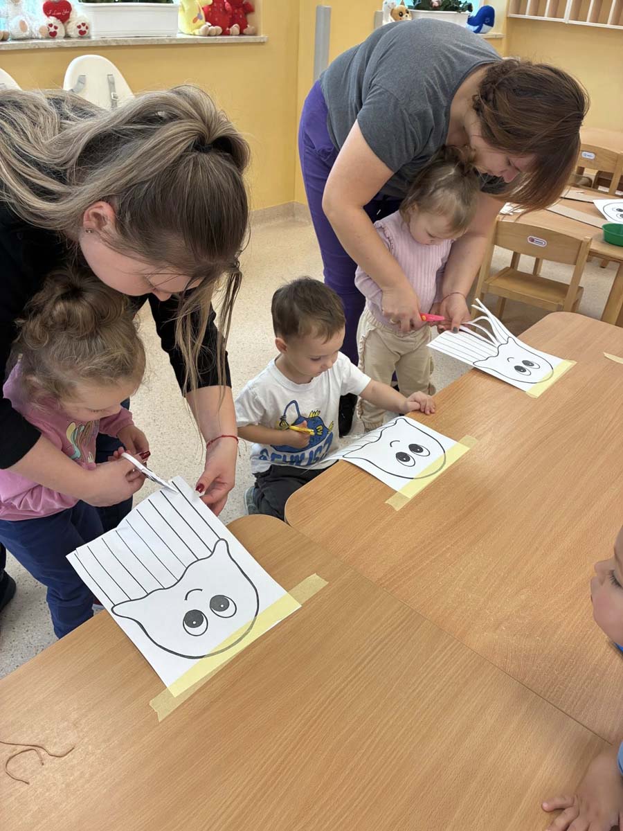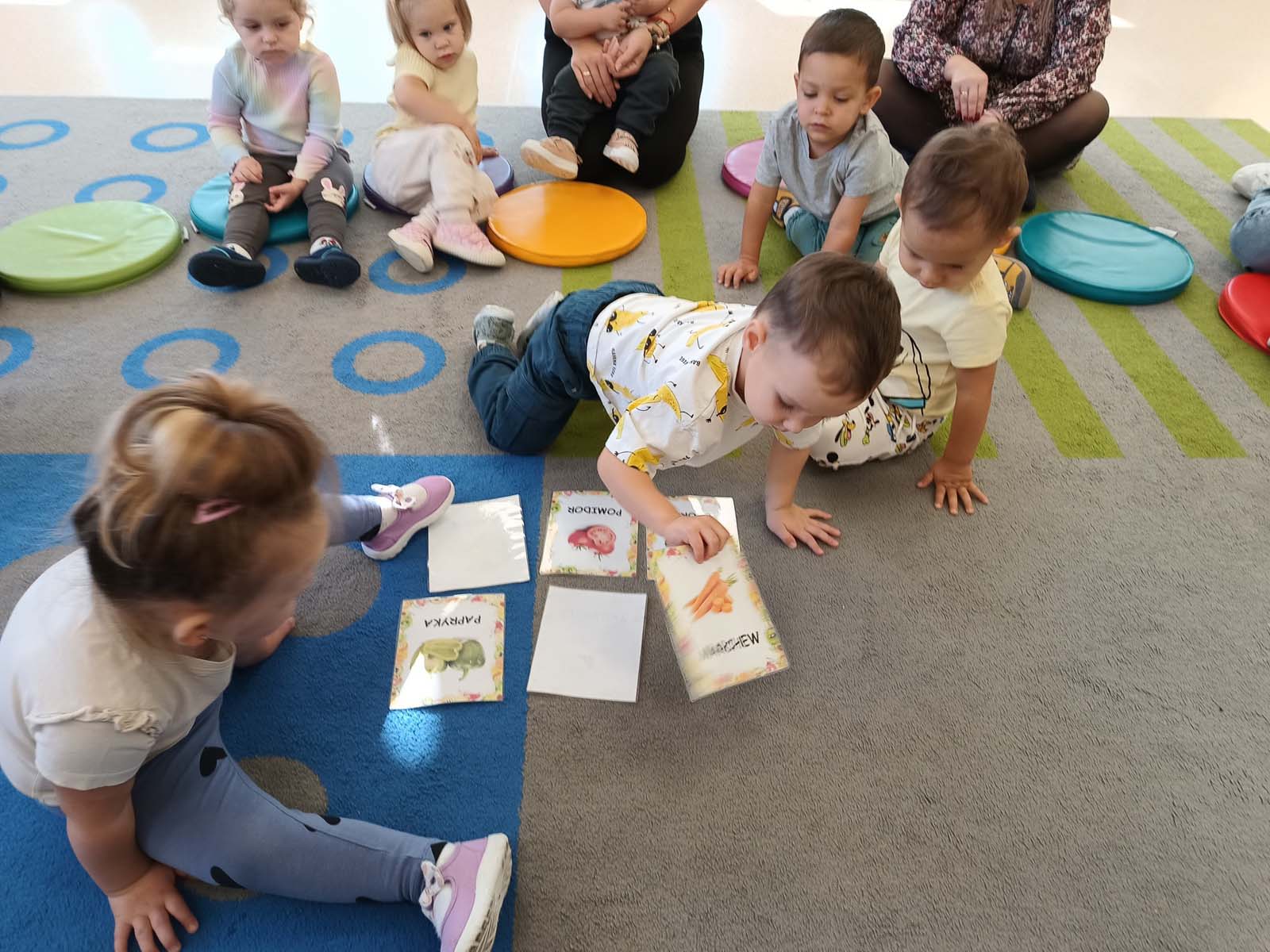 Maluchy twórczo spędzały czas bawiąc się wspólnie pod opieką ukochanych cioć. Zapoznane z otoczeniem chętniej uczestniczyły w zajęciach, podczas realizacji tematów tygodniowych: