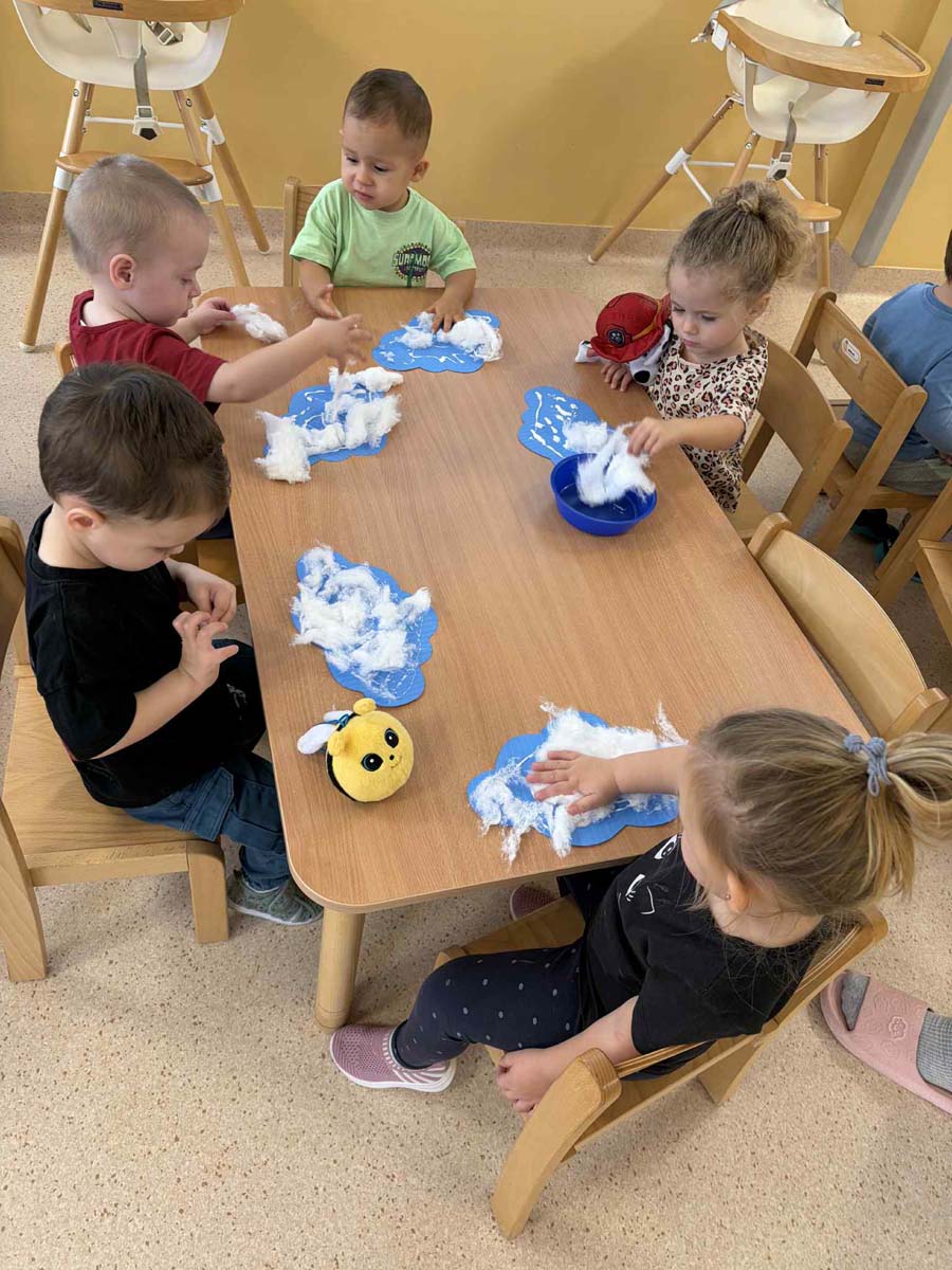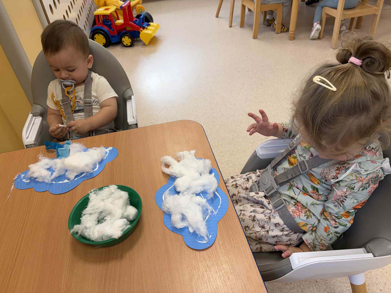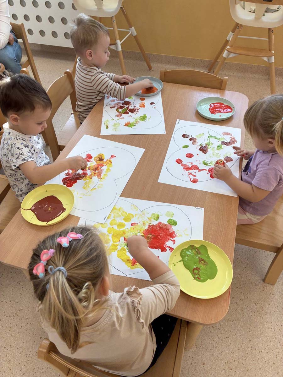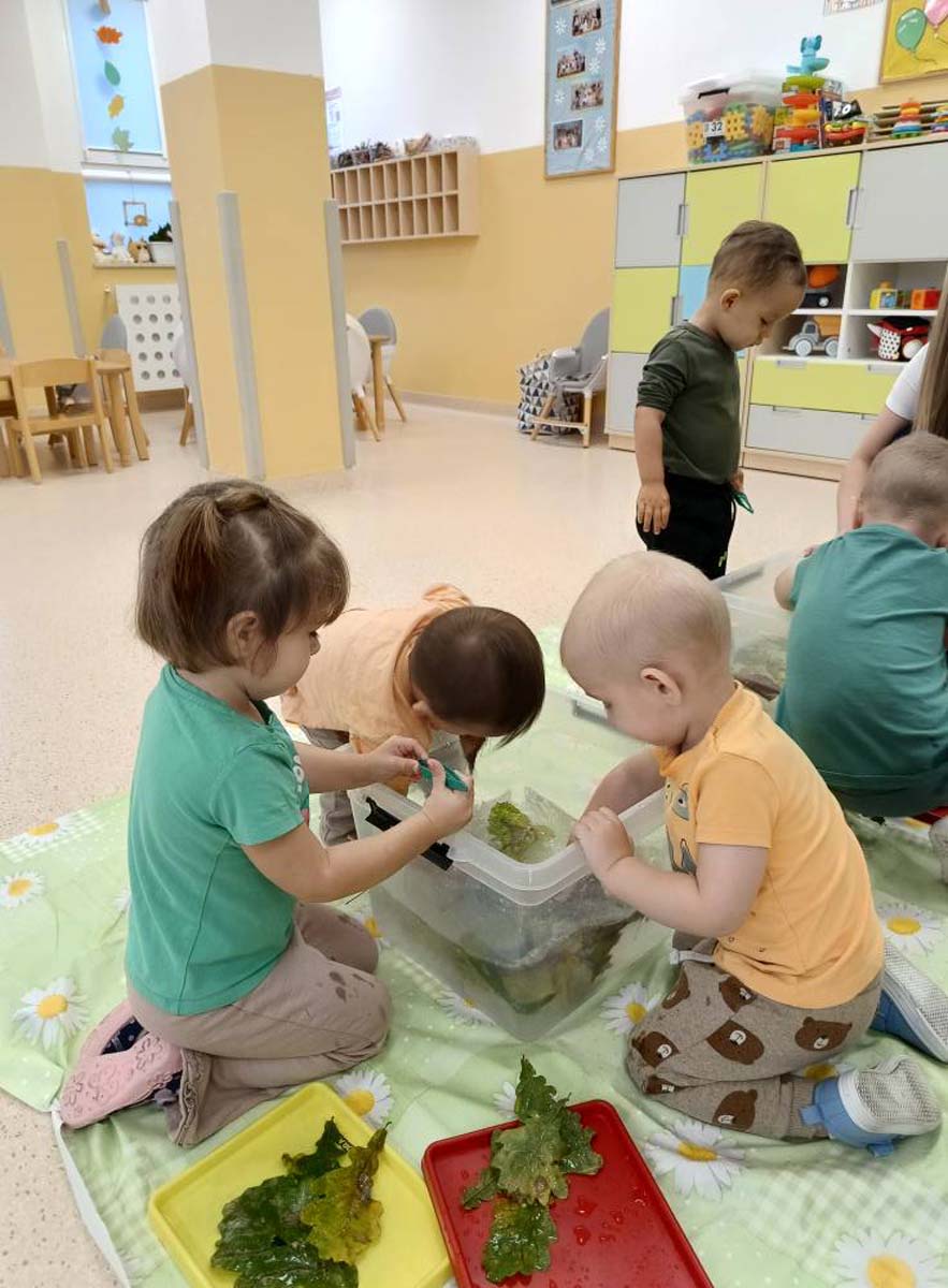 Maluchy twórczo spędzały czas bawiąc się wspólnie pod opieką ukochanych cioć. Zapoznane z otoczeniem chętniej uczestniczyły w zajęciach, podczas realizacji tematów tygodniowych: