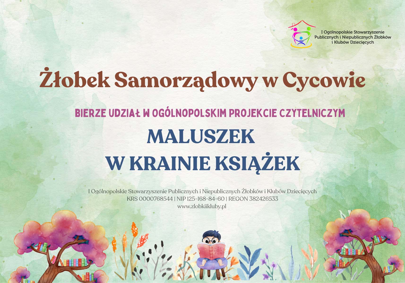 Żłobek Samorządowy w Cycowie przystąpił do Ogólnopolskiego Projektu Czytelniczego "Maluszek w Krainie Książek" zainicjowanego przez Stowarzyszenie Publicznych i Niepublicznych Żłobków i Klubów Dziecięcych.