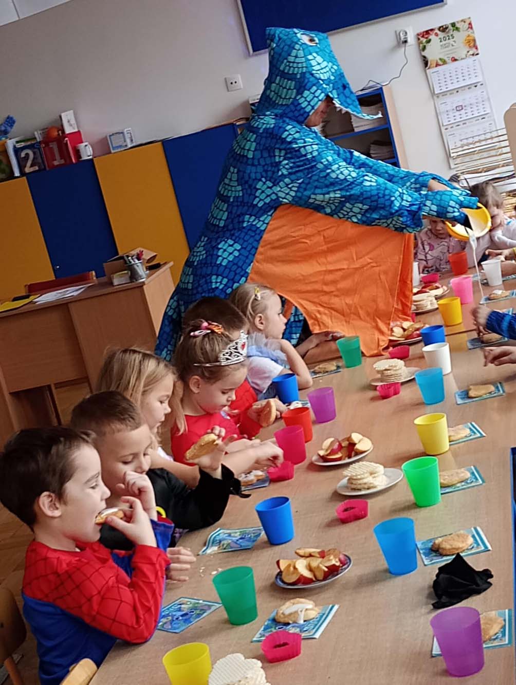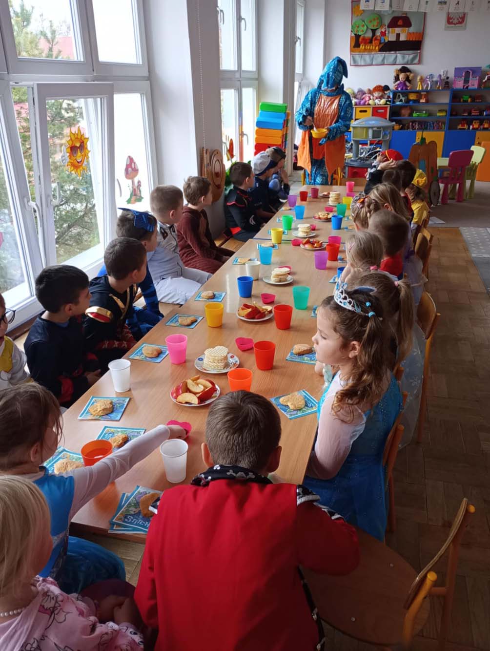 Taki dzień w przedszkolu jest wyśmienitą okazją, aby przypomnieć naszych ulubionych bajkowych bohaterów, którzy są nieodzownym elementem dzieciństwa - bawią, uczą, pomagają poznać prawdę o świecie i życiu, oswajają dziecięce lęki. Czasem stanowią wzór do naśladowania, a czasem pomagają dzieciom rozpoznać zło. Przedszkolaki miały okazję, w tym dniu, upodobnić się do swoich ulubionych bajkowych postaci. Podczas zabawy nie zabrakło tańców, zagadek, konkursów, rozpoznawania baśniowych atrybutów oraz dekorowania pierników.