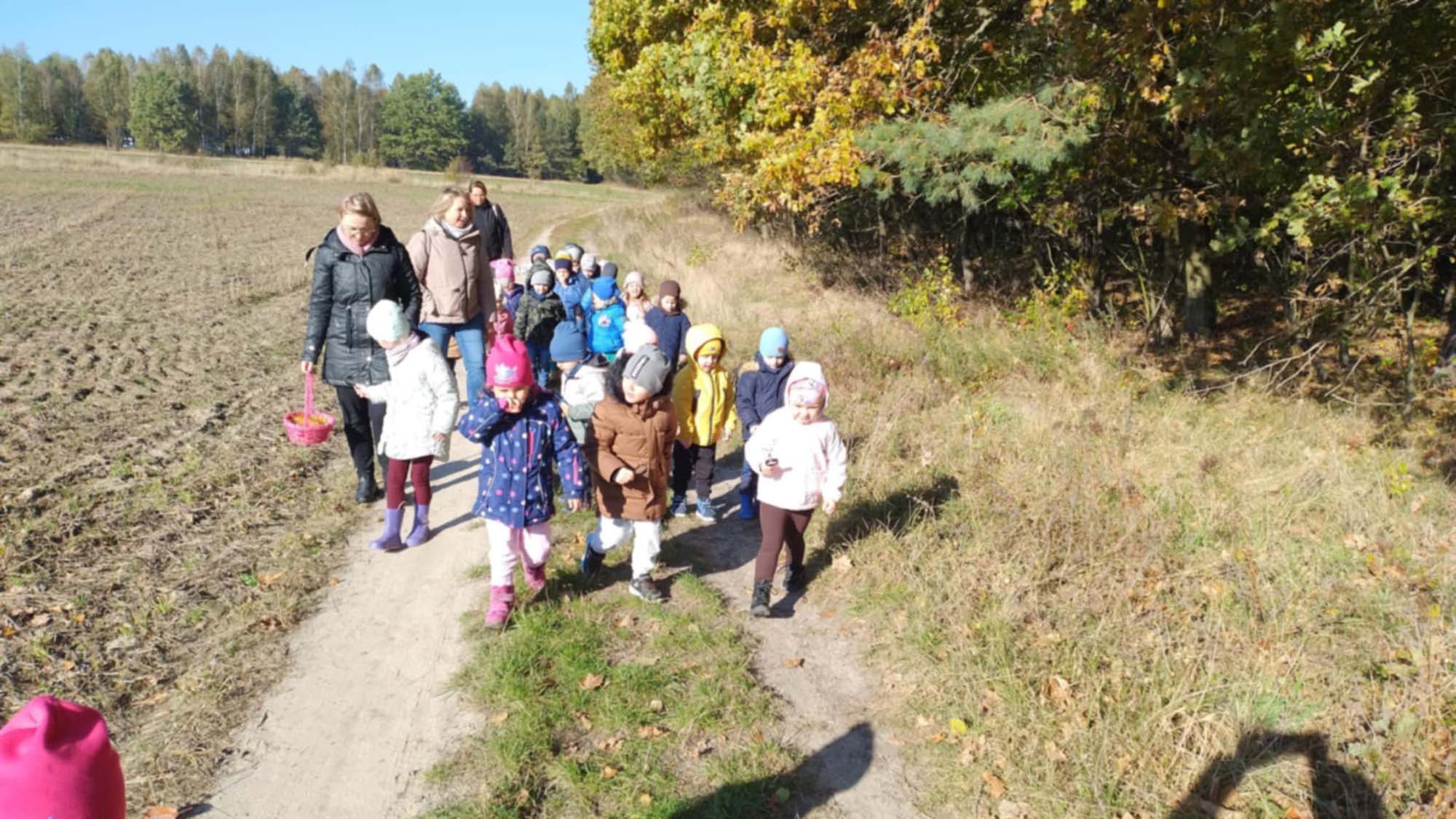 21.10.25 r. Przedszkolaki z grupy „Pszczółki” oraz „Myszki” wybrały się na wycieczkę do lasu w Wólce Cycowskiej. Głównym celem wizyty w lesie było przybliżenie dzieciom środowiska przyrodniczego, jakim jest las. Dzieci miały okazję podziwiać poszczególne gatunki drzew. Poznawały także przyrodę słuchając odgłosów lasu. Otaczająca przyroda i wspaniałe krajobrazy wzbudziły w dzieciach zachwyt. Przedszkolaki spędziły miło czas na świeżym powietrzu w otoczeniu pięknej, malowniczej przyrody leśnej.