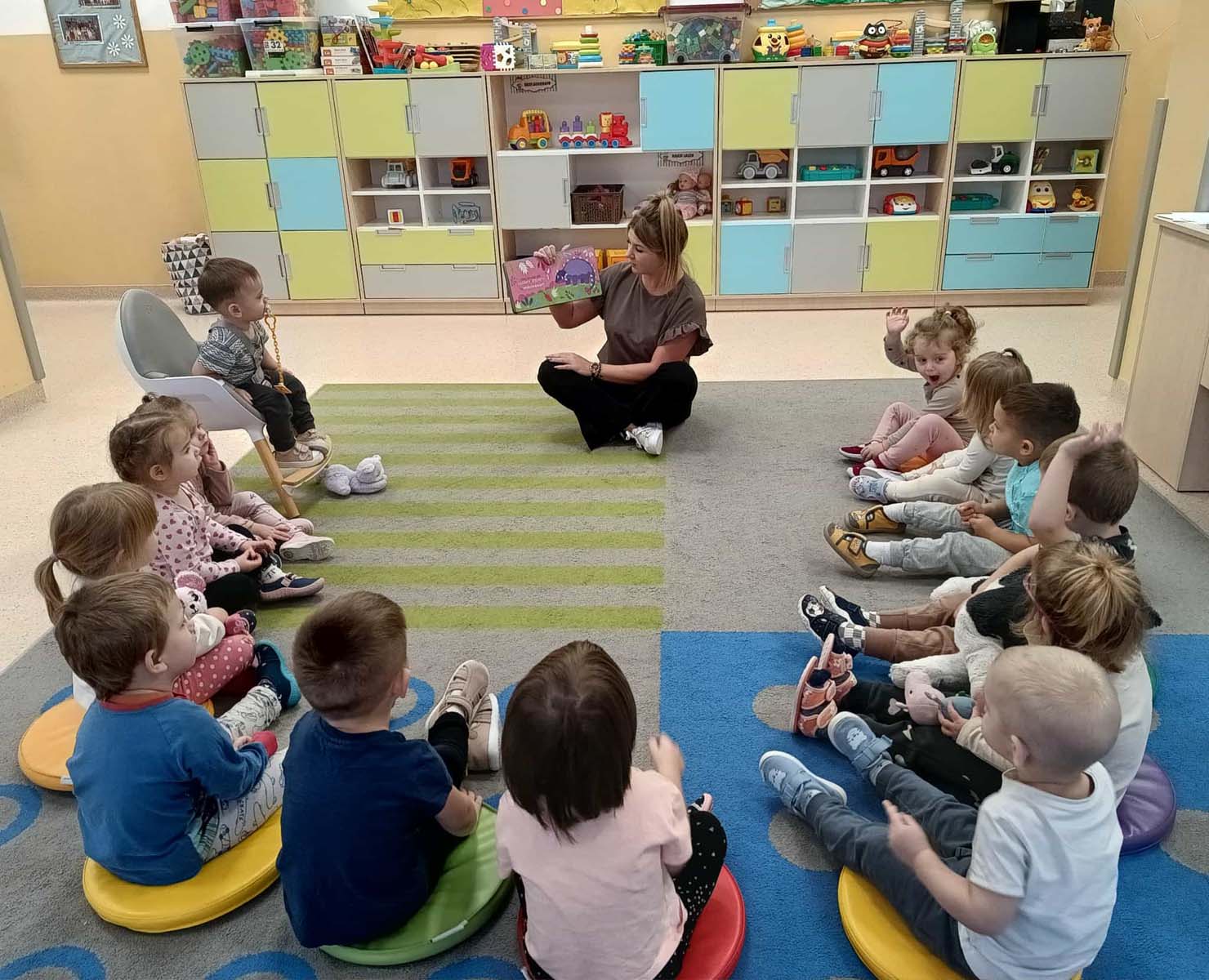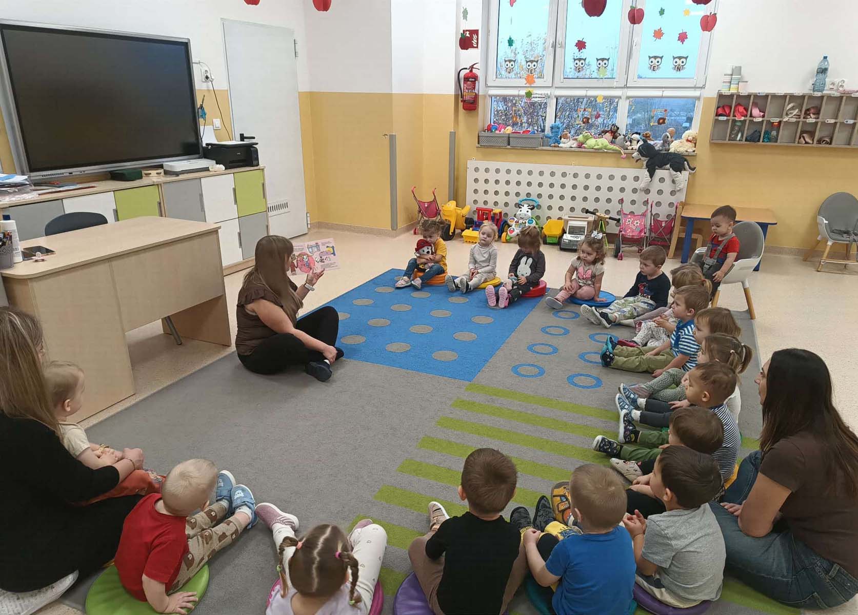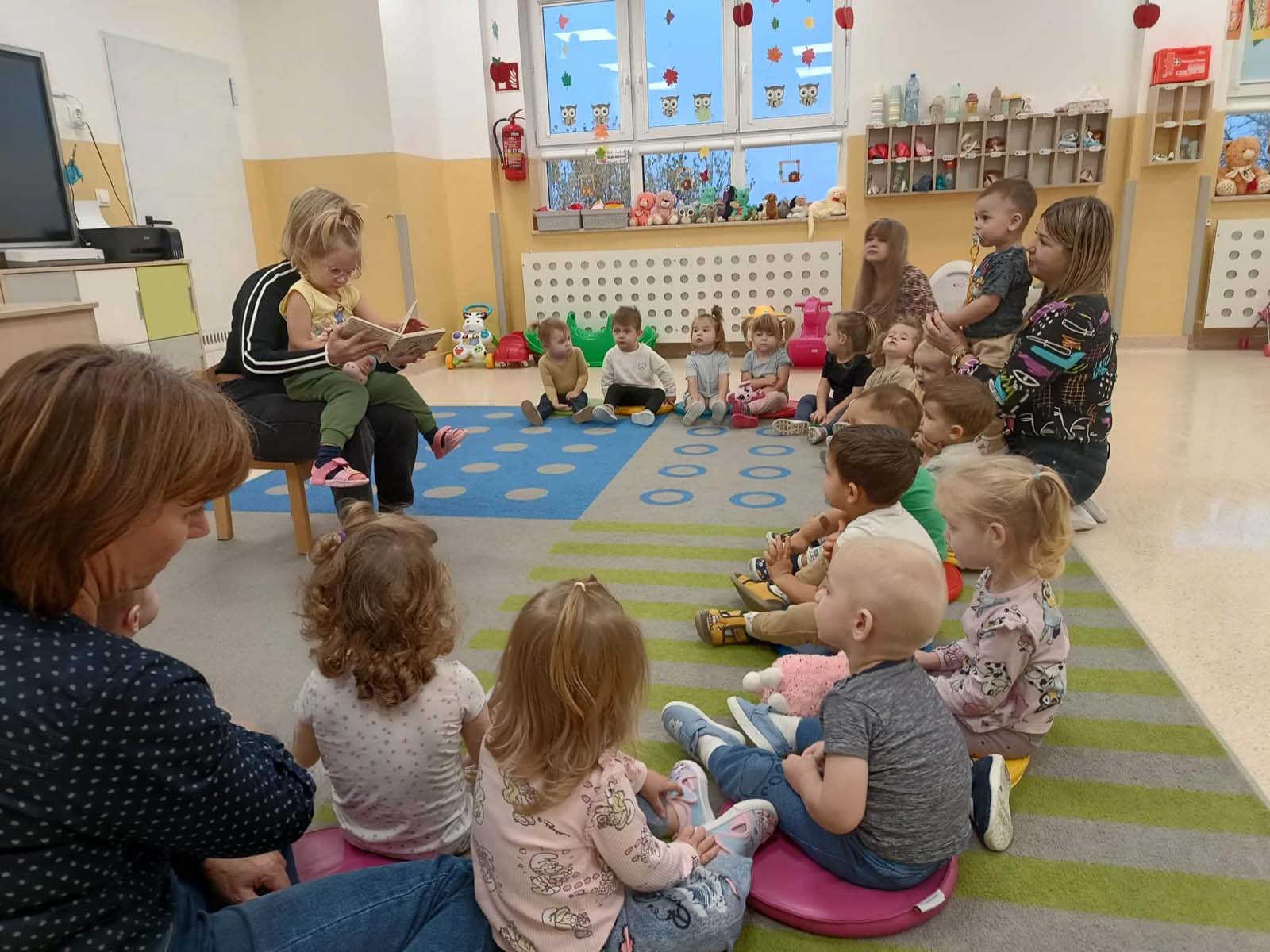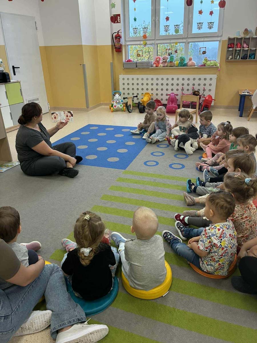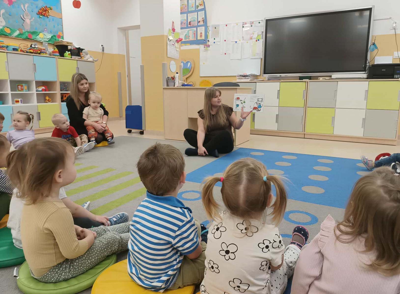 Maluchy naśladowały czynności przedstawione w książkach, powtarzały słowa, zwroty oraz wyrazy dźwiękonaśladowcze, a także dotykały różnych faktur. Dowiedziały się jak ważne jest zachowanie porządku wokół siebie oraz dbanie o czystość i dobre samopoczucie. Poznały też nazwy dinozaurów, ich zwyczaje i wygląd. Wspólne czytanie było okazją do ciekawie spędzonego czasu oraz integracji.