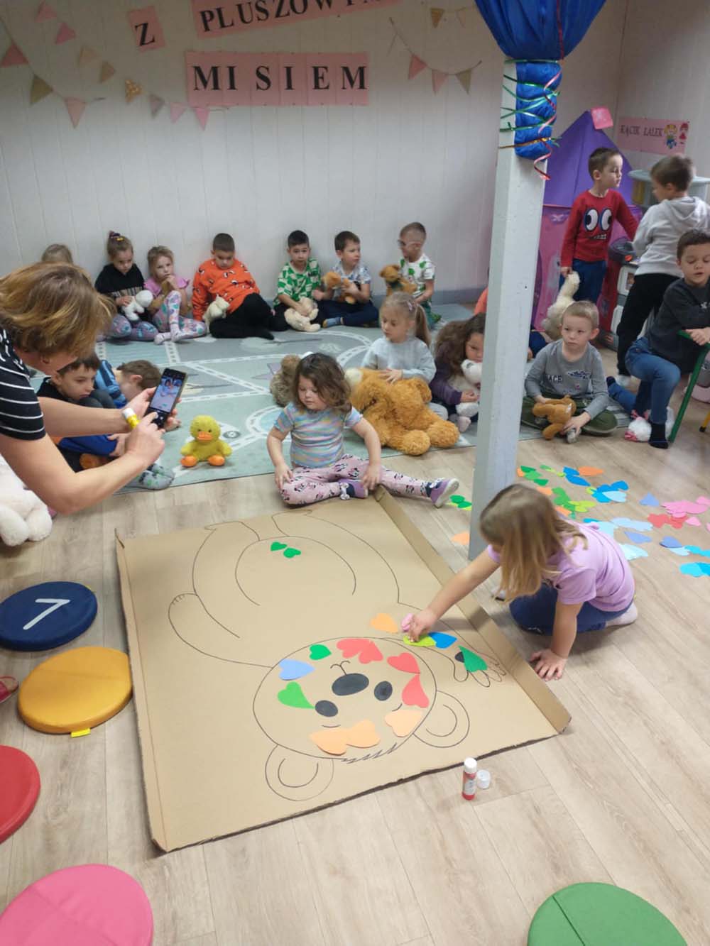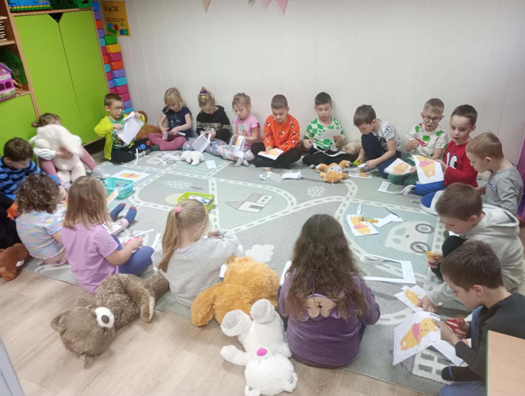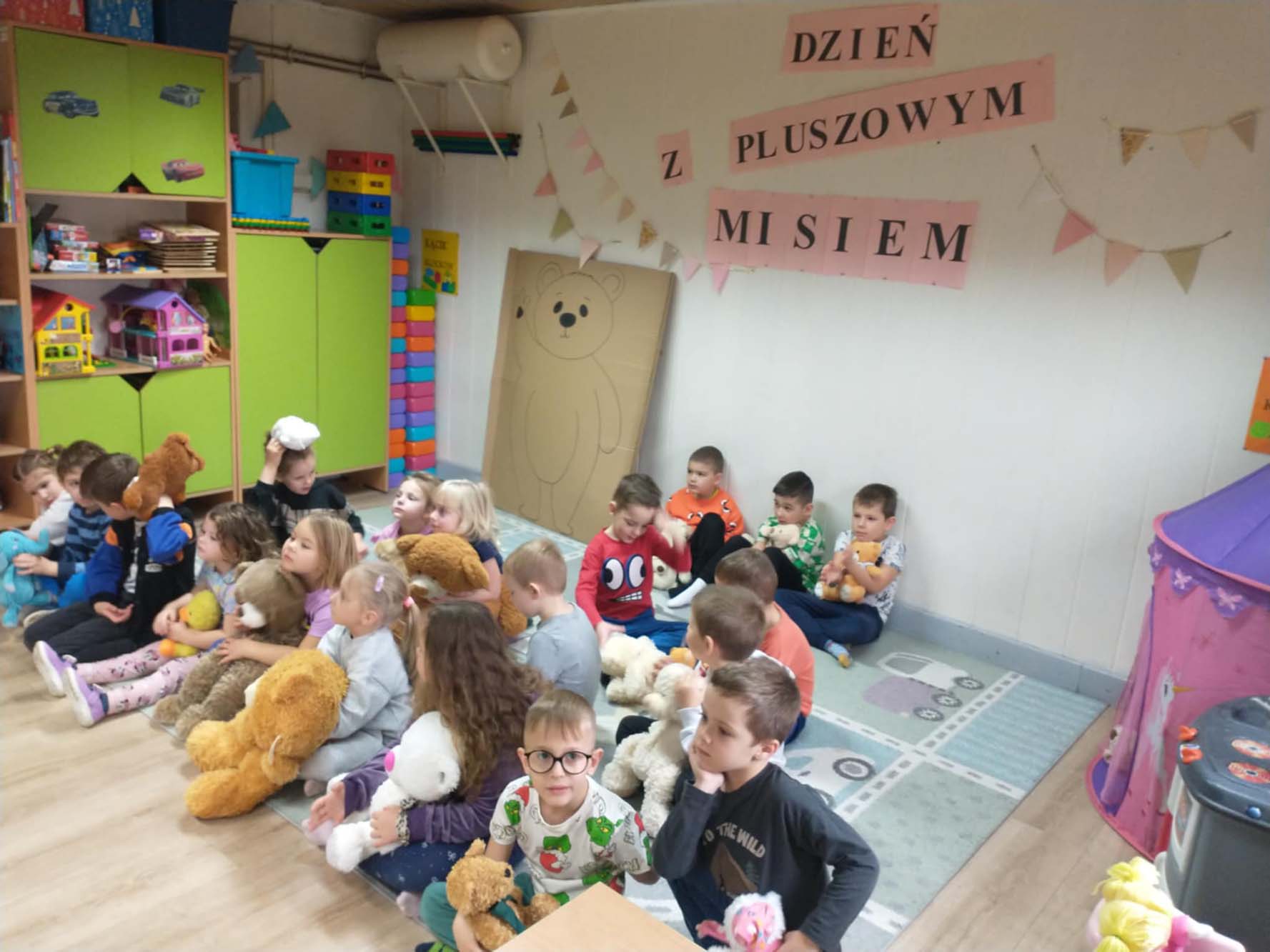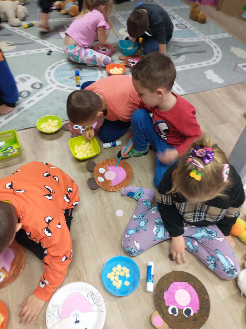 Każde dziecko miało swojego milutkiego przyjacielem, by wspólnie z innymi celebrować te pełne radości chwile. Na dzieci i ich misie czekało wiele atrakcji. Poznały historię święta, bawiły się przy misiowych piosenkach, uczestniczyły w zabawach ruchowych i zręcznościowych. Nie zabrakło konkursów, quizów i zgadywanek o słynnych misiach występujących w znanych bajkach. Przedszkolaki również wykonały przepiękne prace plastyczne z misiem w roli głównej. Chętne dzieci mogły także skosztować pysznego przysmaku wszystkich misiów - słodkiego miodku.