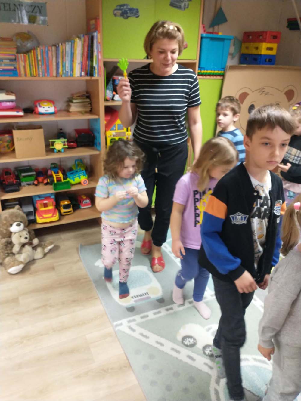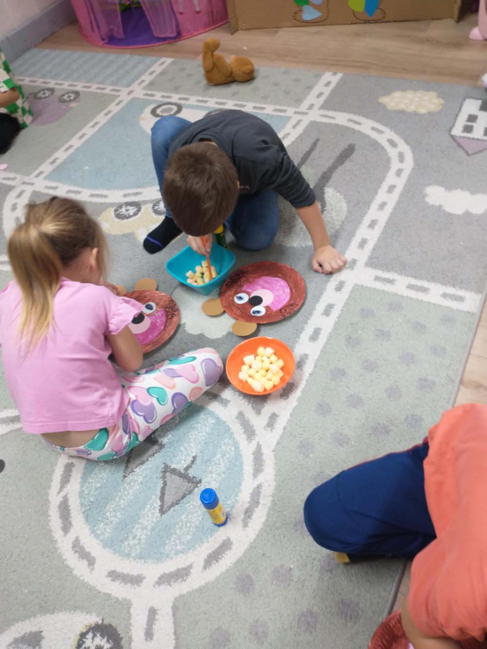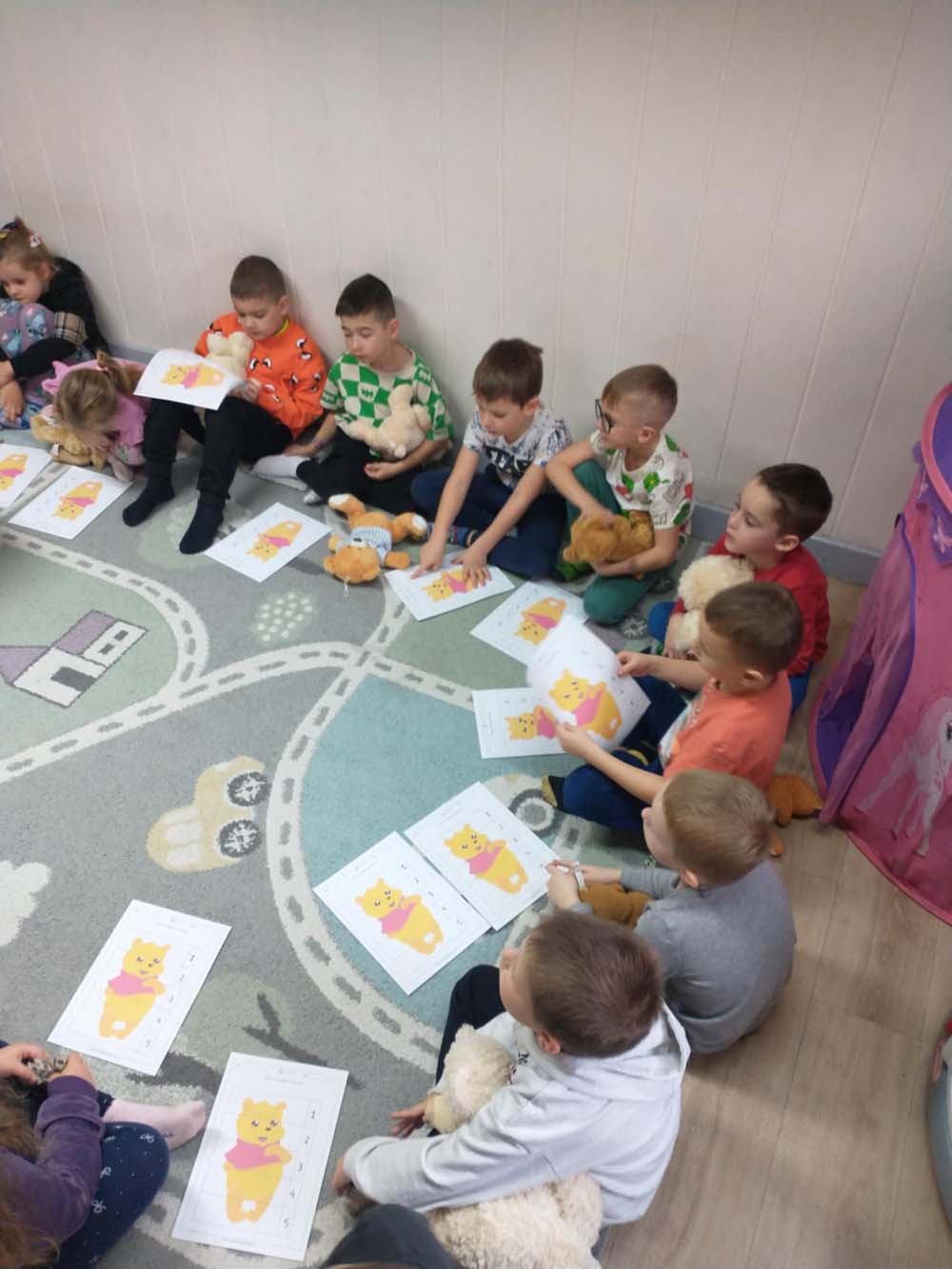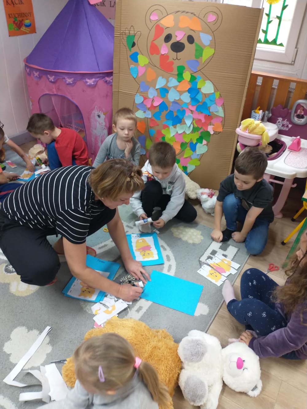 Każde dziecko miało swojego milutkiego przyjacielem, by wspólnie z innymi celebrować te pełne radości chwile. Na dzieci i ich misie czekało wiele atrakcji. Poznały historię święta, bawiły się przy misiowych piosenkach, uczestniczyły w zabawach ruchowych i zręcznościowych. Nie zabrakło konkursów, quizów i zgadywanek o słynnych misiach występujących w znanych bajkach. Przedszkolaki również wykonały przepiękne prace plastyczne z misiem w roli głównej. Chętne dzieci mogły także skosztować pysznego przysmaku wszystkich misiów - słodkiego miodku.