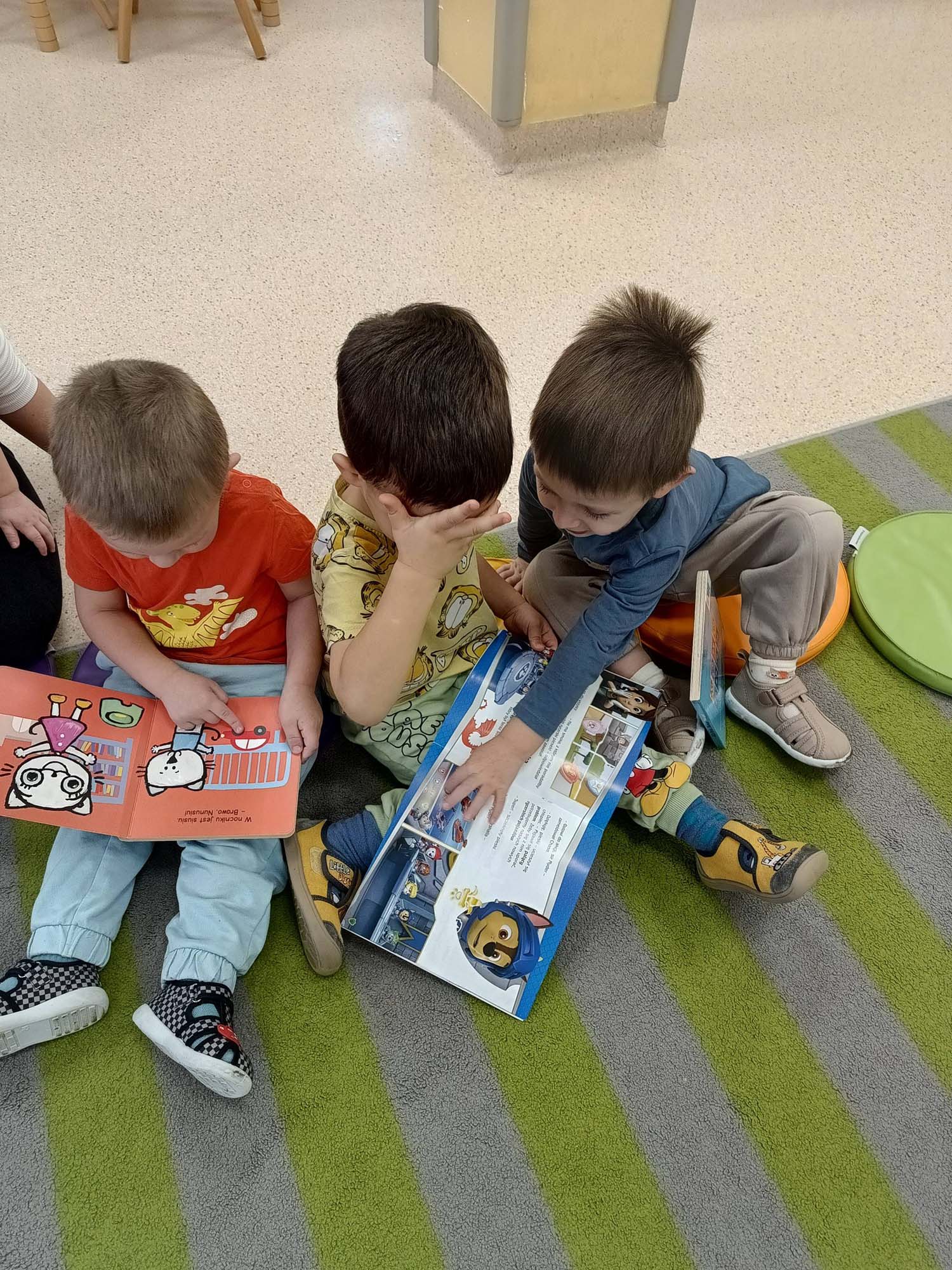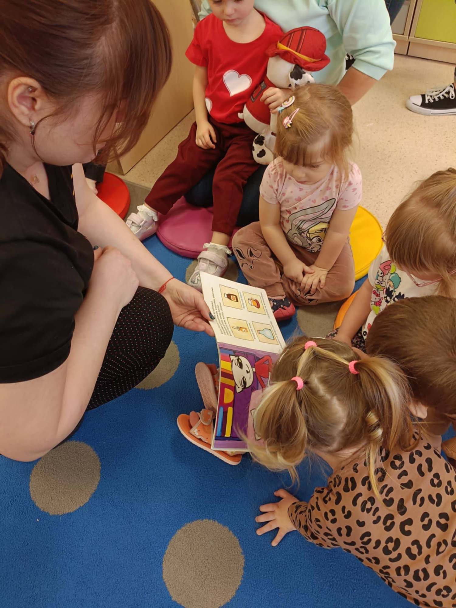 Maluchy poznały kotka ciekawego świata, jego przygody i zwierzęta, które spotykał na swej drodze. Dowiedziały się jak wartościowa i ciekawa może być wspólna zabawa z Babcią i Dziadkiem oraz jak ważne jest stosowanie się do zaleceń lekarza podczas chorowania - zażywanie lekarstw, odpoczynek, odpowiednie nawodnienie. Miały możliwość odpowiadania na pytania do czytanego tekstu, wskazywania zwierząt, przedmiotów i postaci na ilustracjach, a także naśladowania czynności i dźwięków pojawiających się w książkach. Dzięki wspólnemu czytaniu „Słoneczka” wartościowo spędziły czas, który sprzyjał integracji i radości.