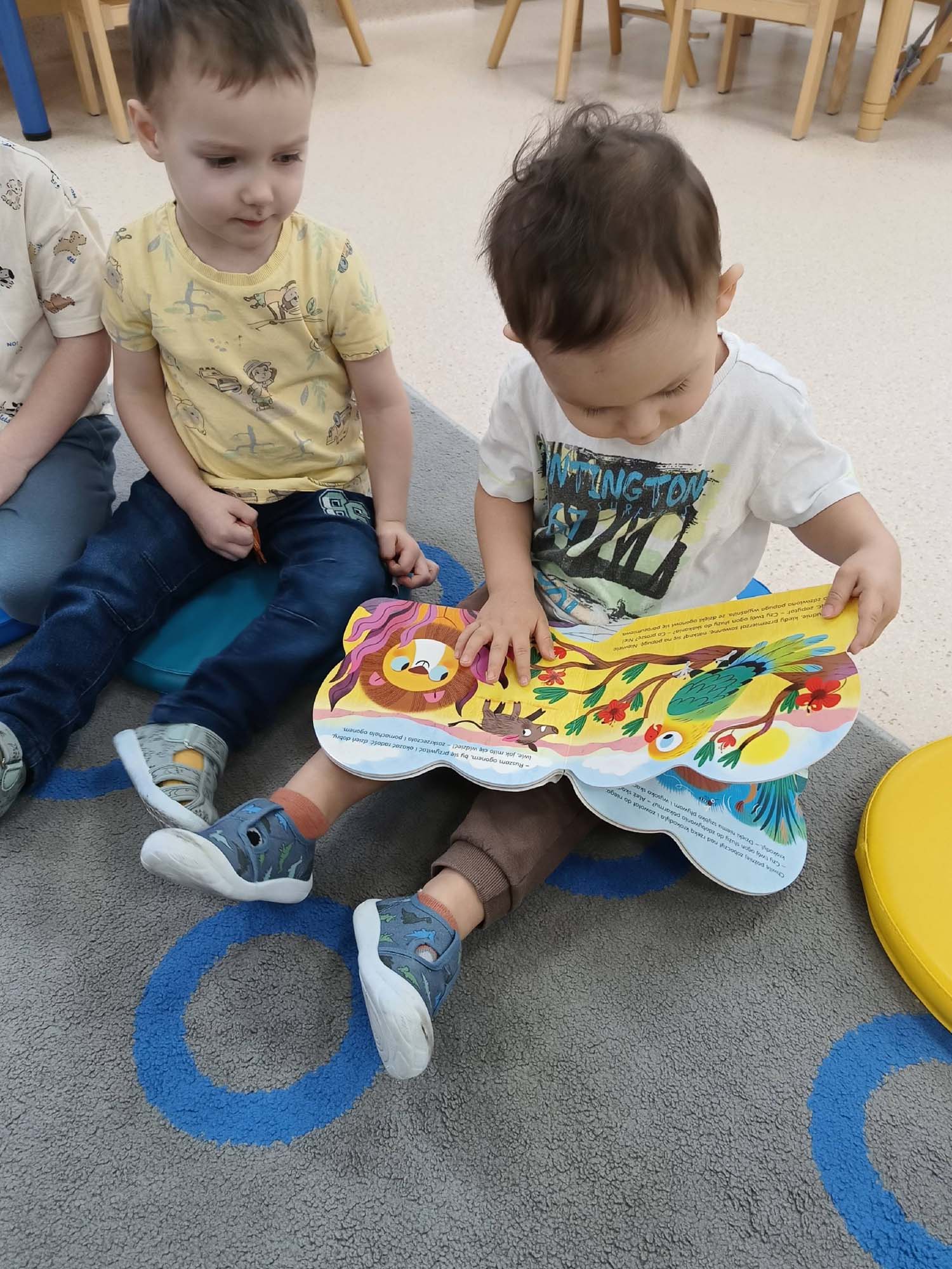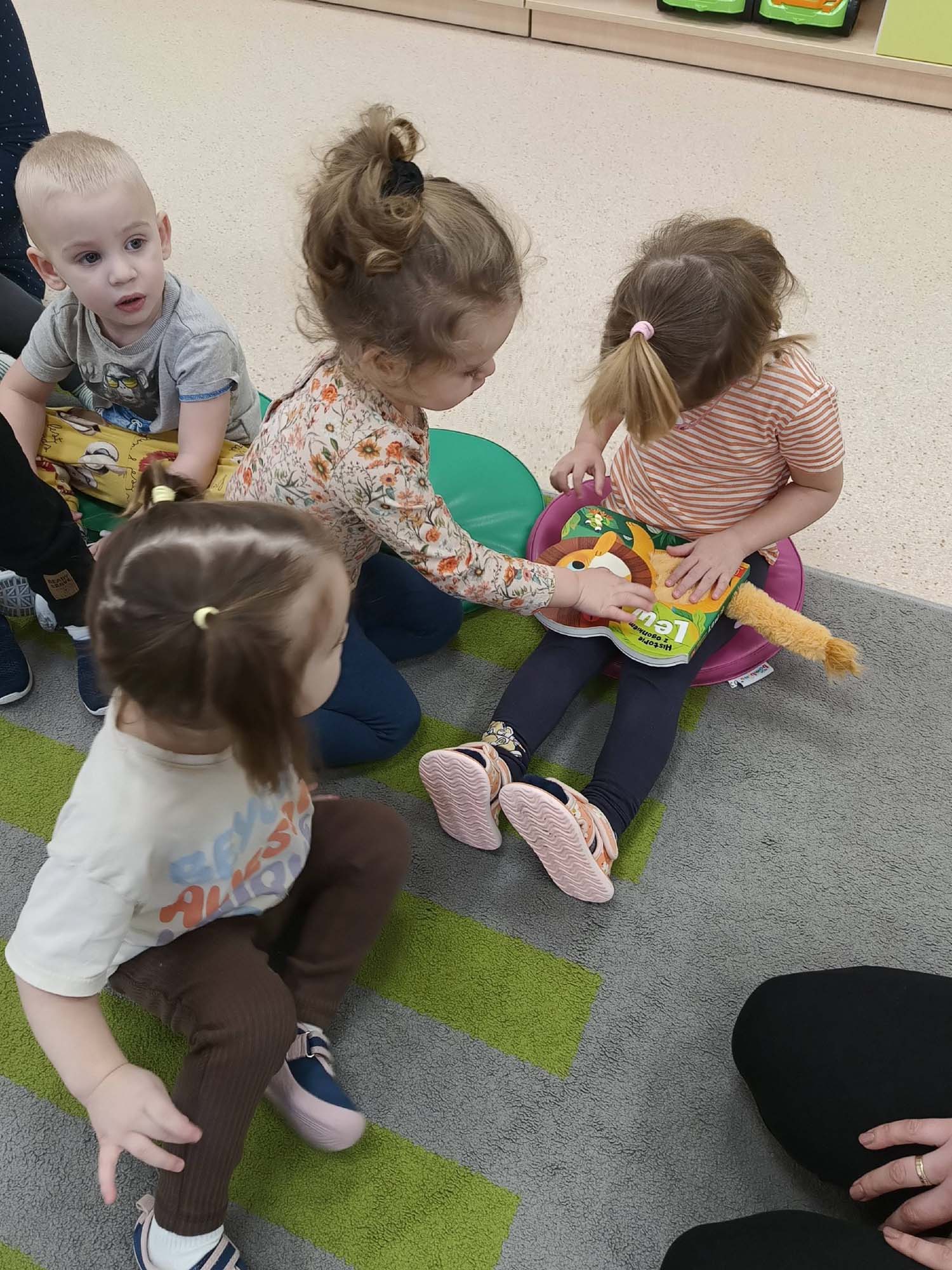 Realizując projekt zainicjowany przez Stowarzyszenie Publicznych i Niepublicznych Żłobków i Klubów Dziecięcych mama Poli przeczytała naszym żłobkowiczom książkę pt. „Lew - historie z ogonkiem” A. Kaczyńskiej. Podczas spotkania dzieci próbowały wypowiadać się na temat ilustracji oraz dotykały „futerko i ogon” lwa, co dodatkowo pobudziło ich zmysły i wyobraźnię. Miały też możliwość obejrzeć własnoręcznie całą książkę, co okazało się znakomitym pretekstem do zainteresowania się innymi książkami znajdującymi się w żłobkowym kąciku czytelniczym. Zostały także przeczytane przez opiekunki książki związane z tematyką zajęć oraz tematyką bliską dzieciom t. j.: