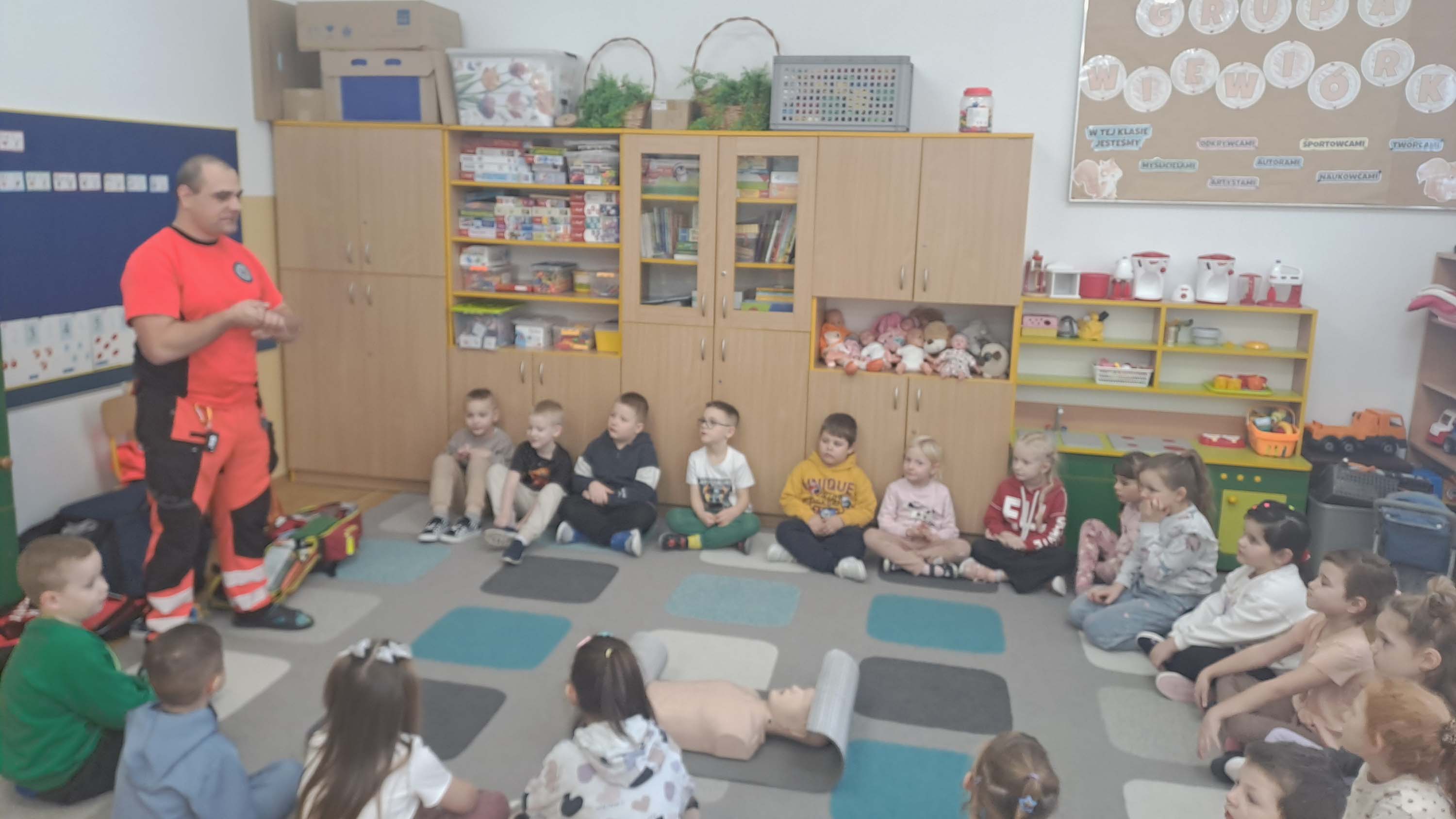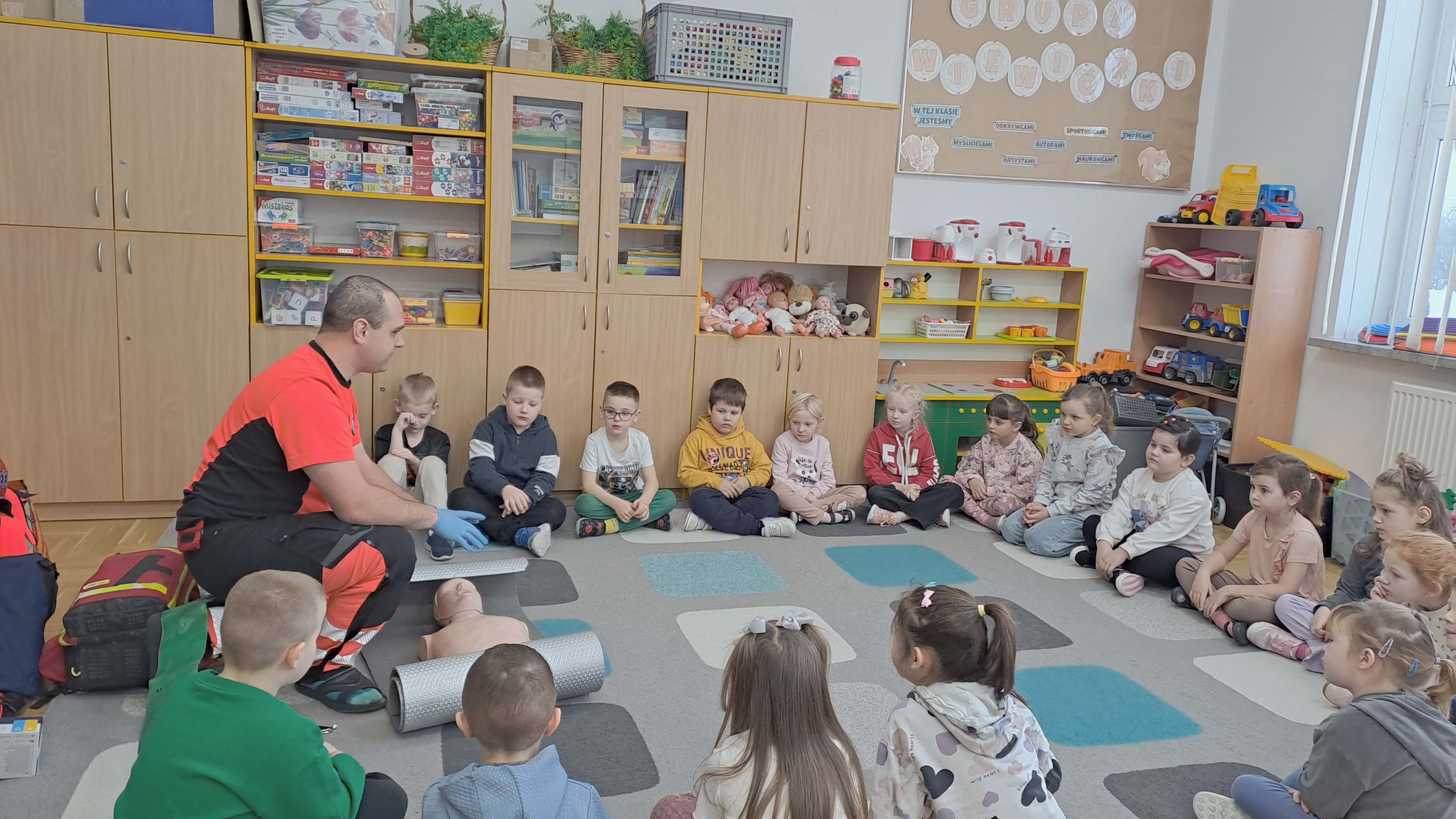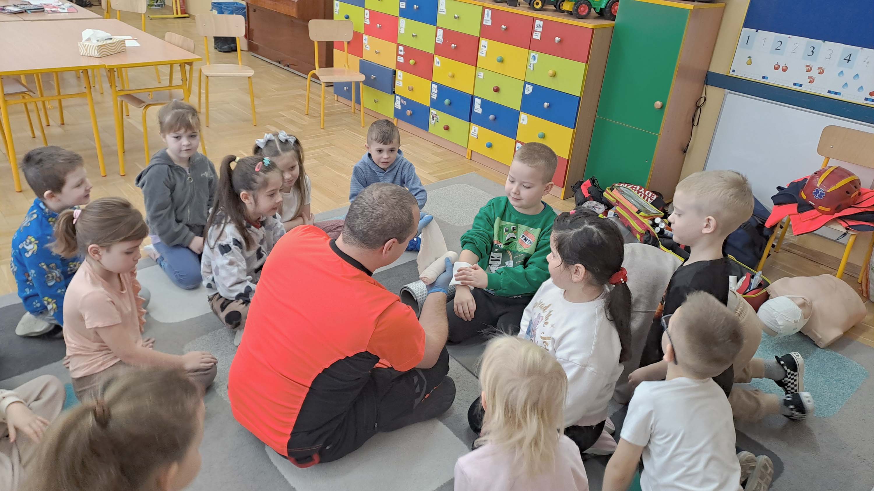 23 stycznia grupa „Wiewiórki” i „Zajączki” wzięły udział w zajęciach z udzielania pierwszej pomocy przedmedycznej, które poprowadził Pan Adam Mazur z Państwowego Ratownictwa Medycznego w Lublinie.