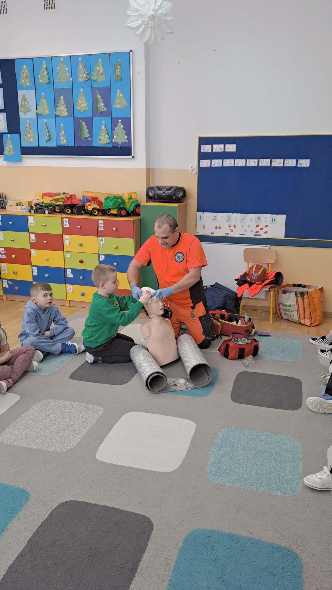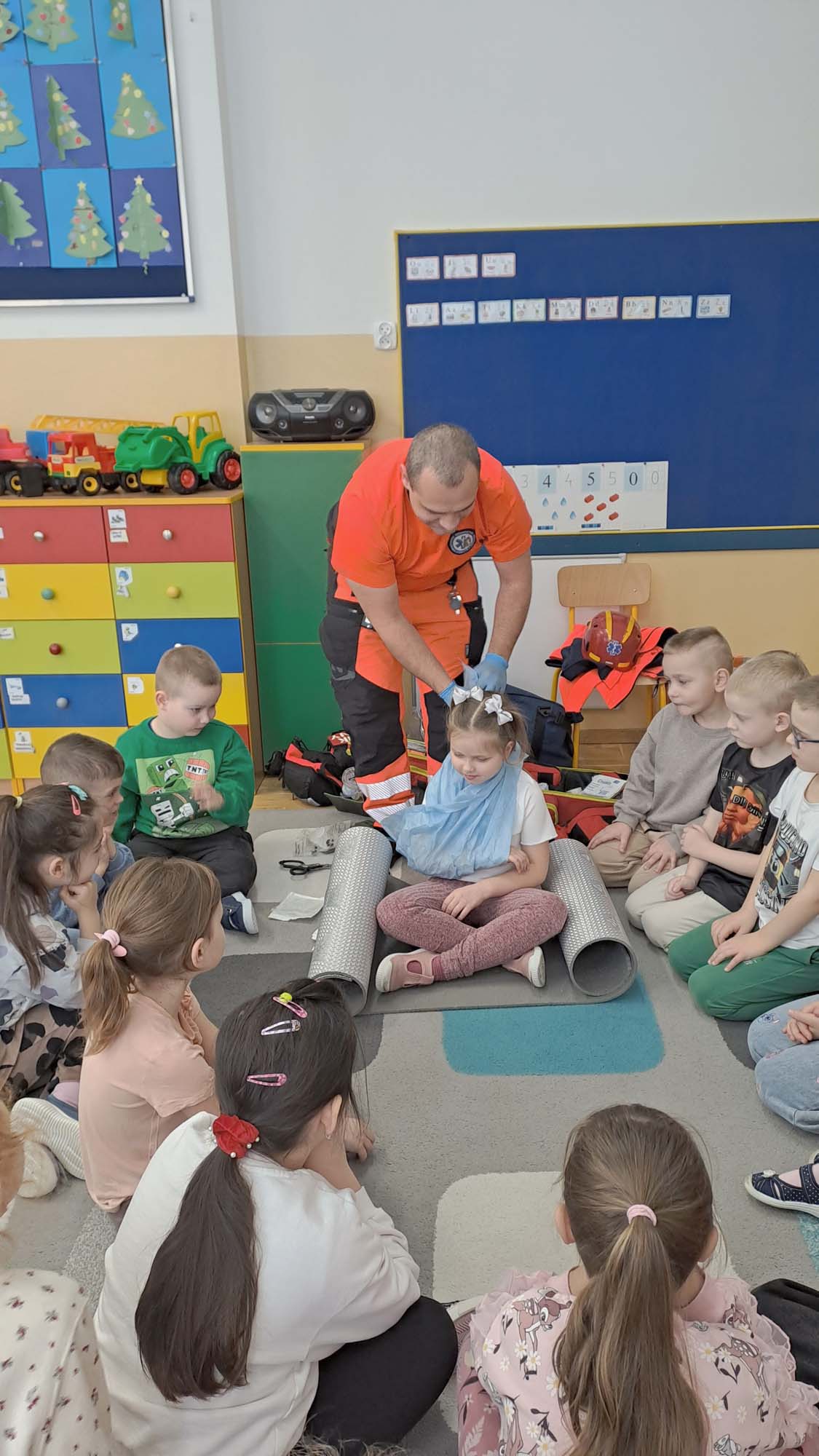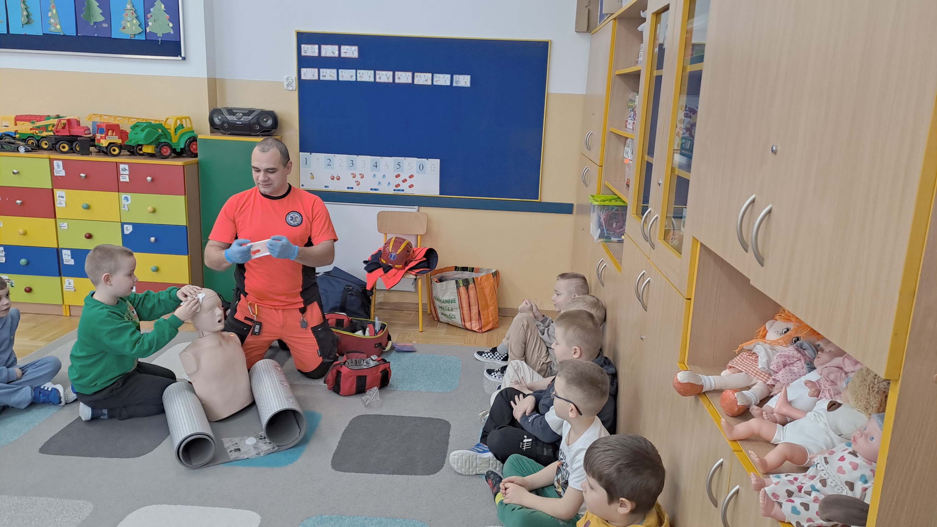 23 stycznia grupa „Wiewiórki” i „Zajączki” wzięły udział w zajęciach z udzielania pierwszej pomocy przedmedycznej, które poprowadził Pan Adam Mazur z Państwowego Ratownictwa Medycznego w Lublinie.