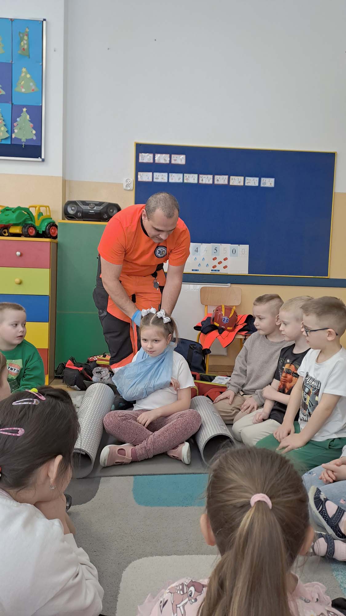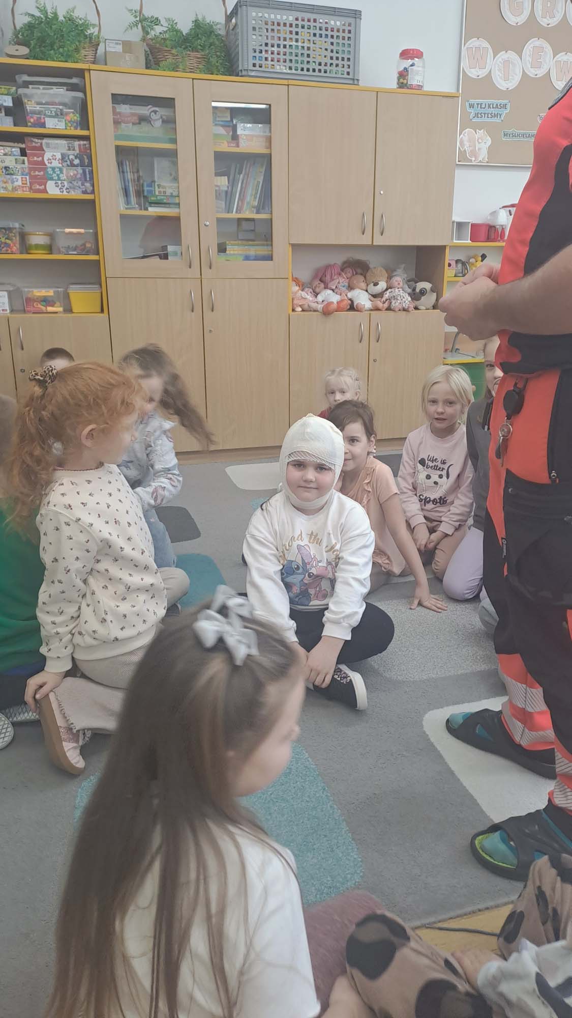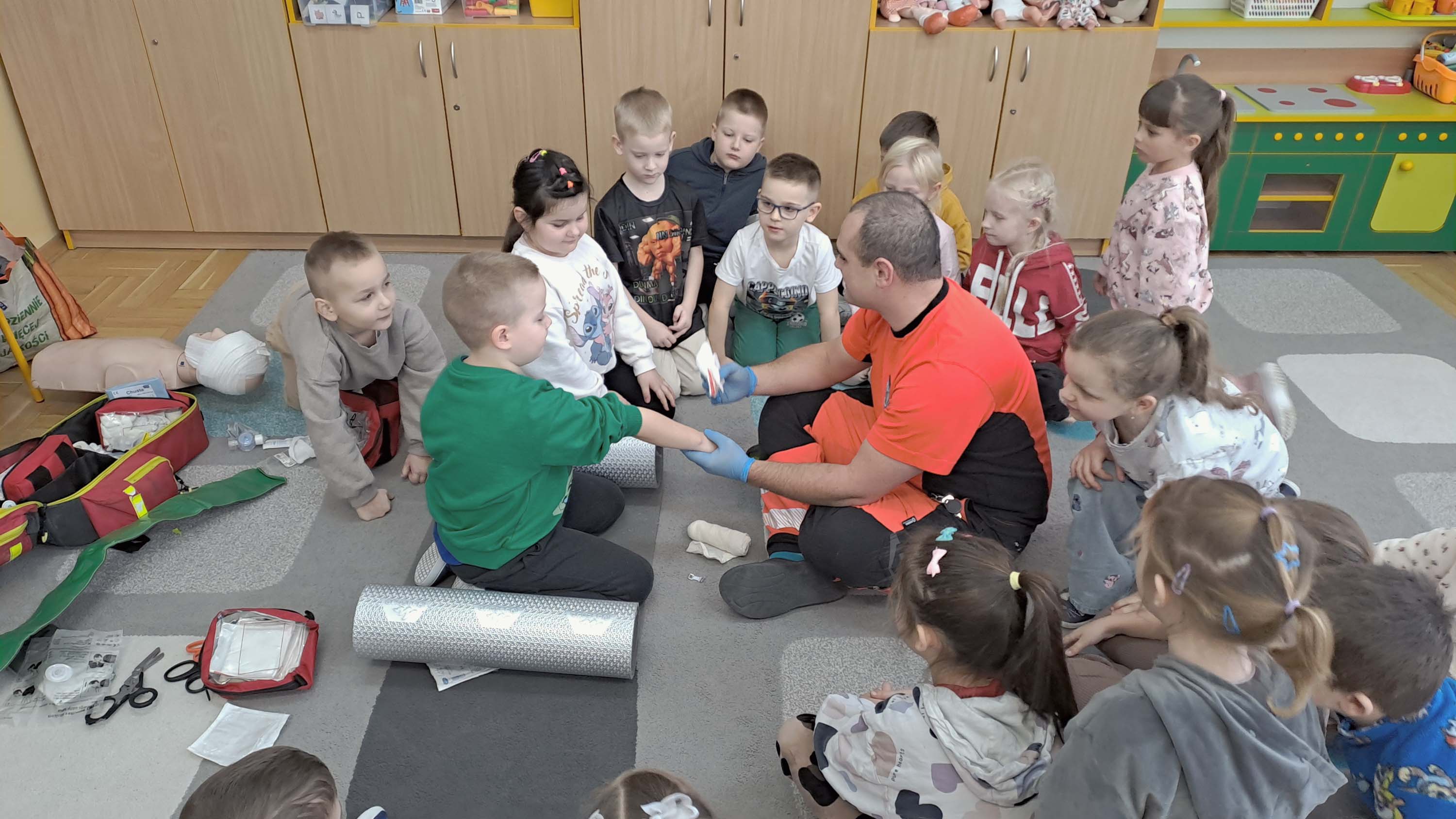 Podczas zajęć dzieci mogły poczuć się jak mali ratownicy. Poznały procedury zachowania się w sytuacjach zagrożenia życia. Wiele emocji wzbudził pokaz czynności z zakresu resuscytacji wykonany na fantomie oraz zakładanie opatrunków na kończyny.